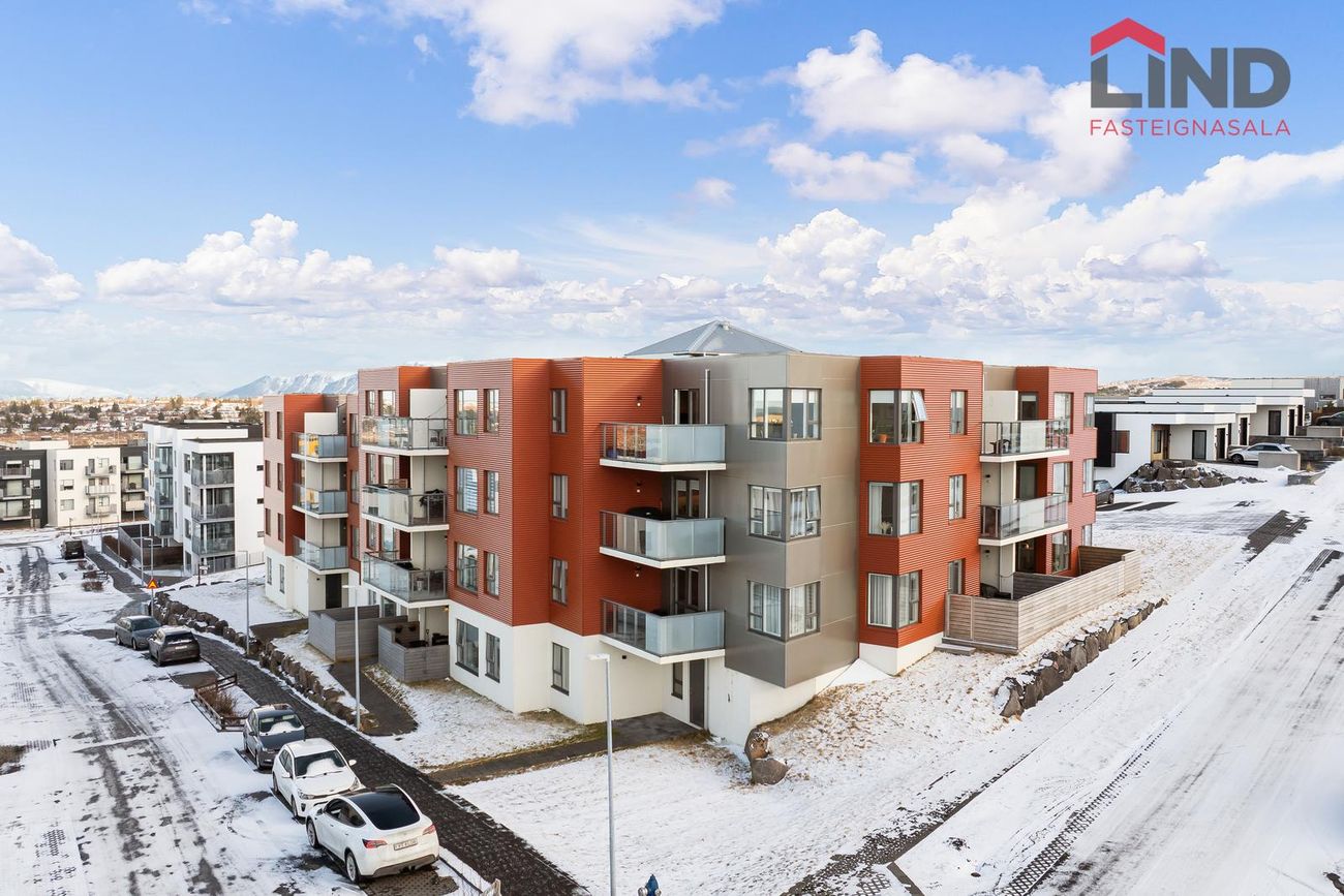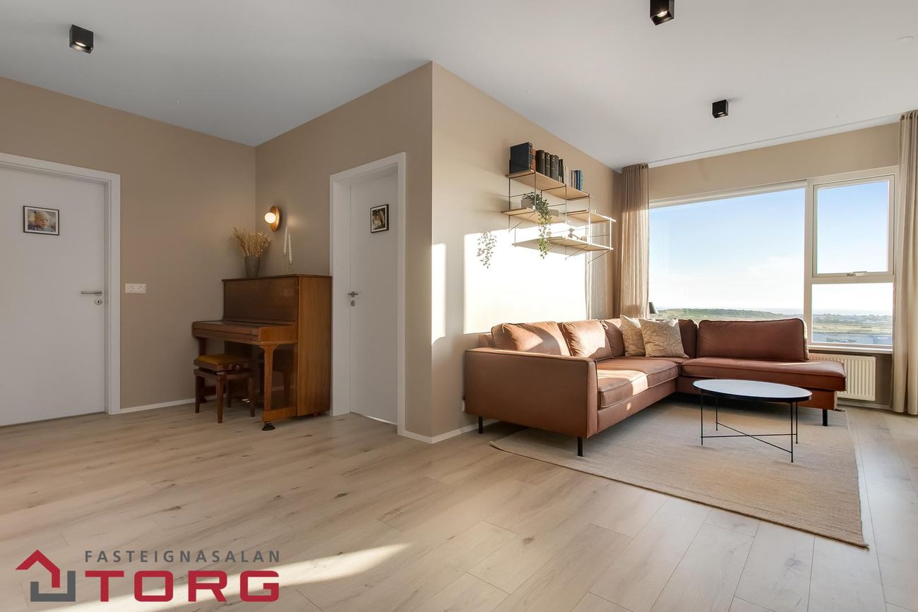 Glæsileg 3ja herb. íbúð (möguleiki að bæta við fjórða svefnherberginu) með stórum stofum, vönduðu nýlegu eldhúsi og tvennum veröndum. Aukin lofthæð er í íbúðinni og fallegt útsýni til fjalla. Bílastæði í bílakjallara og rúmgott þvottaherbergi inn af íbúð.