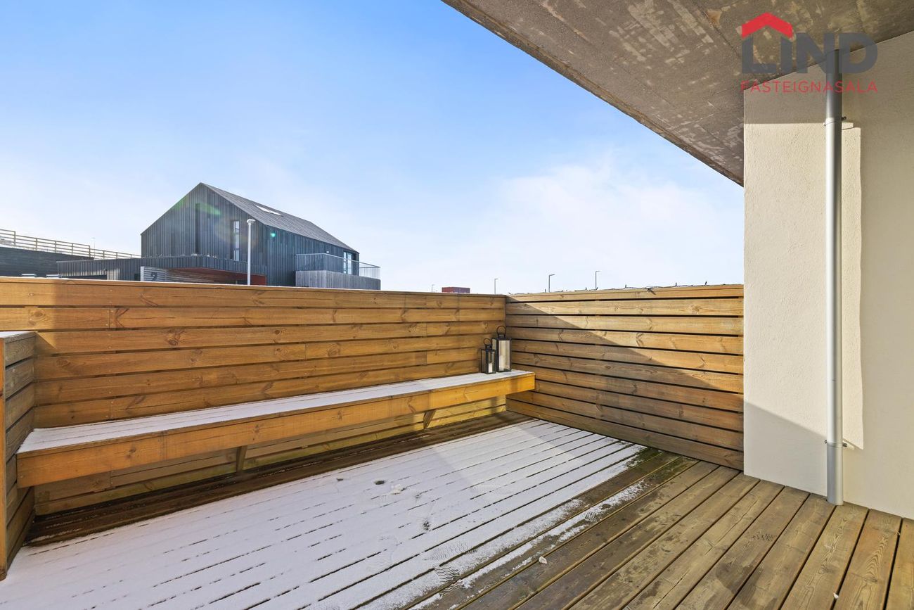 Verönd I: Snúa til norðurs og er afgirt að hluta. Fallegt útsýni til fjalla (Esjunni).