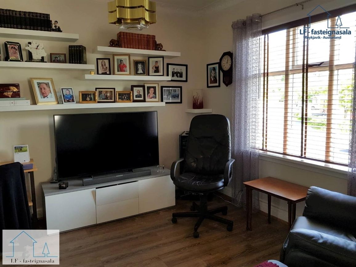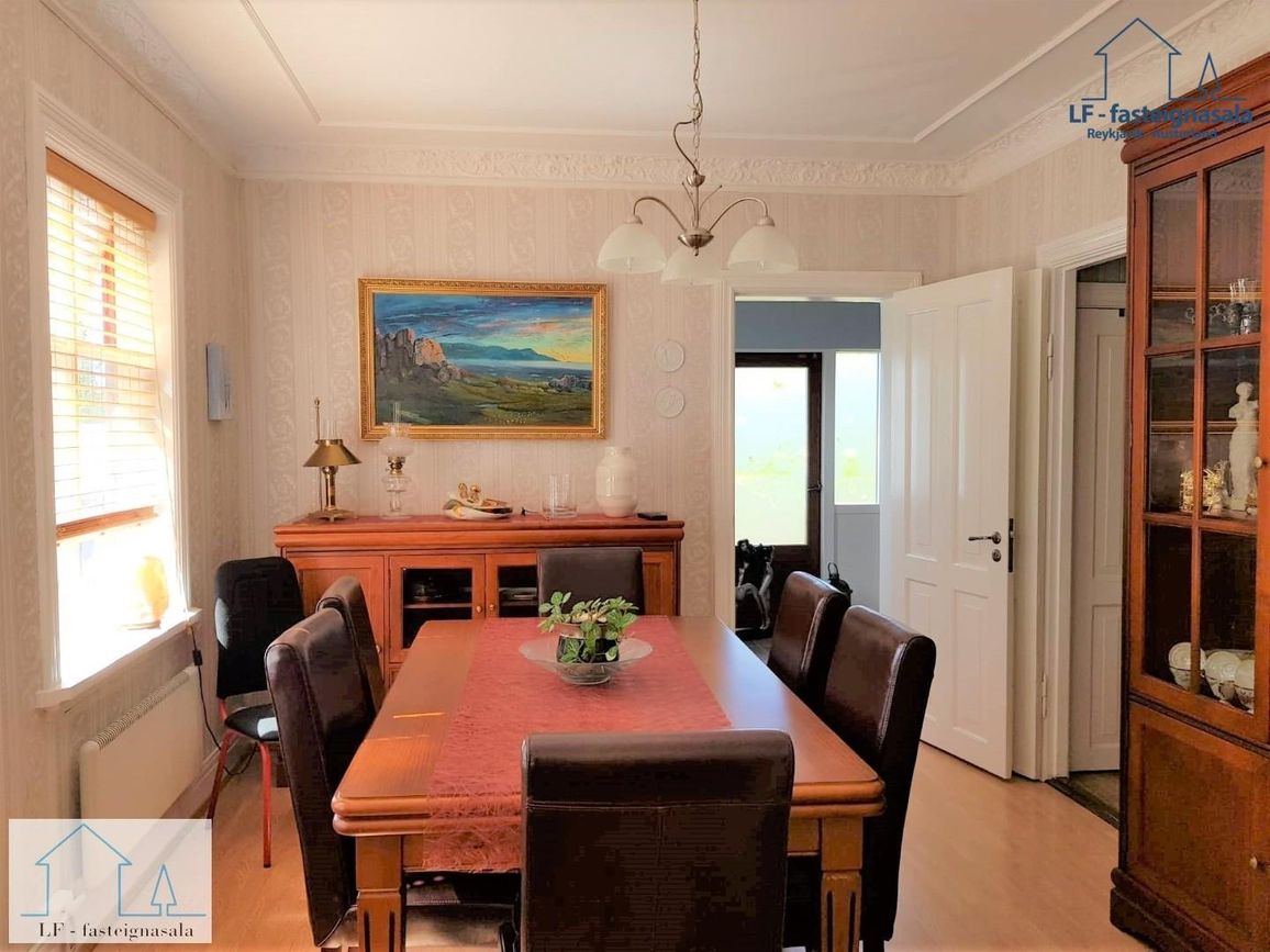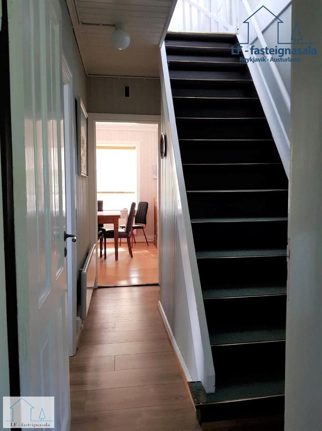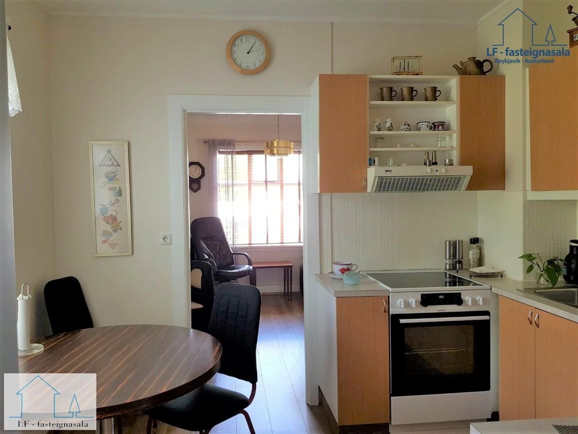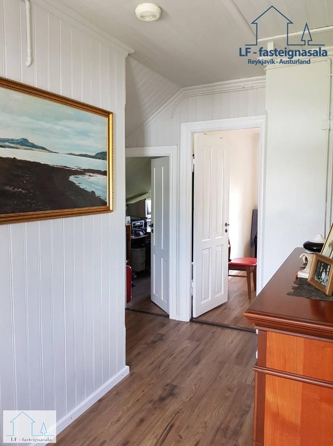3 samliggjandi stofur eru á aðalhæðinni ásamt ágætu eldhúsi. Í viðbyggingu við húsið er baðherbergi með sturtu ásamt þvottahúsi með dyrum út á bakvið húsið.