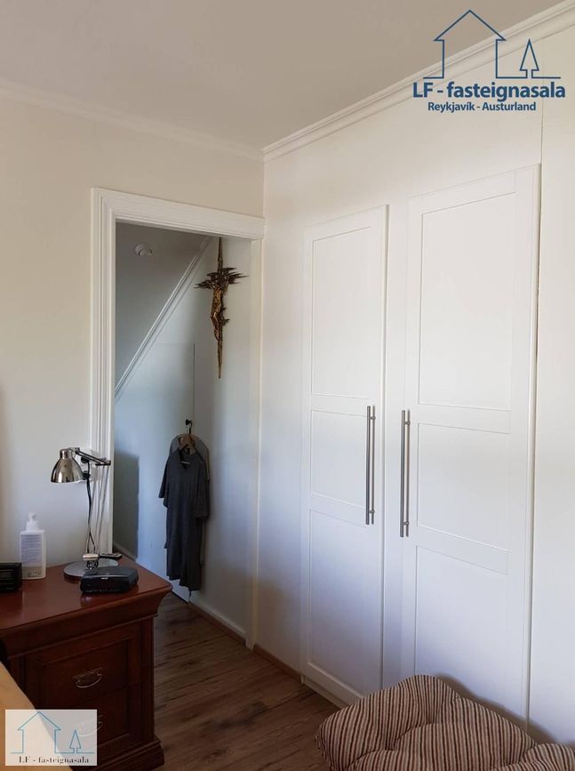 Uppi eru 3 svefnherbergi, salerni, fataherbergi og geymslur undir súð. Frá gangi á rishæðinni er gengið út á góðar og nýlega endurnýjaðar vestursvalir.