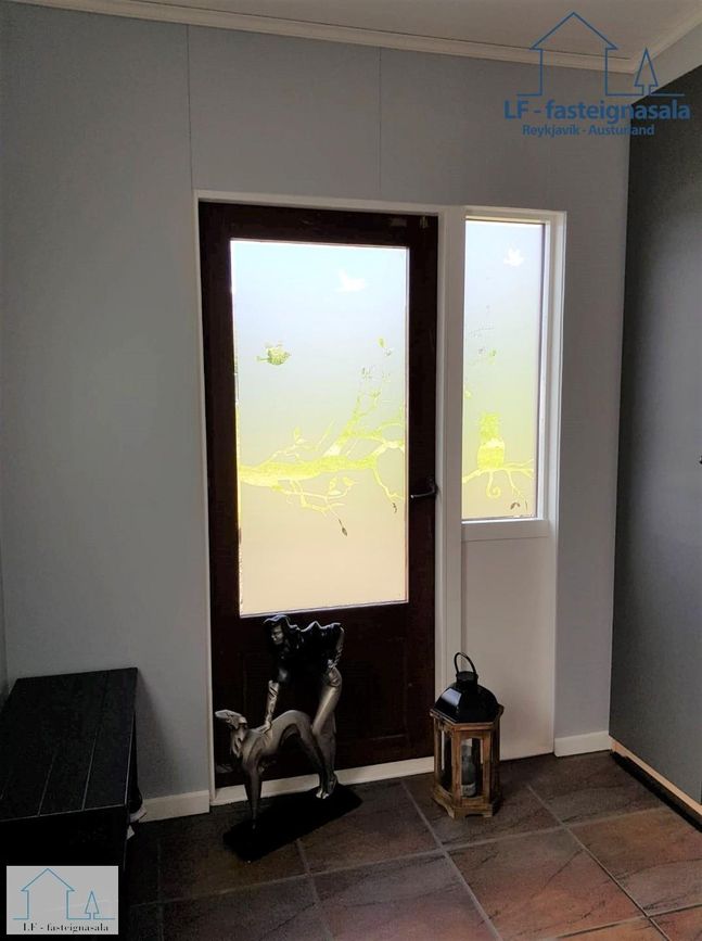 Að aðalhæðinni er gegnið upp nýjar vandaðar steinsteyptar tröppur. Þar er komið inn í forstofu sem er í nýlegri viðbyggingu. Forstofan er með góðum flísum á gólfi og stórum föstum fataskáp. Aukadyr eru á forstofunni og stendur til að byggja sólpall vestan við húsið.