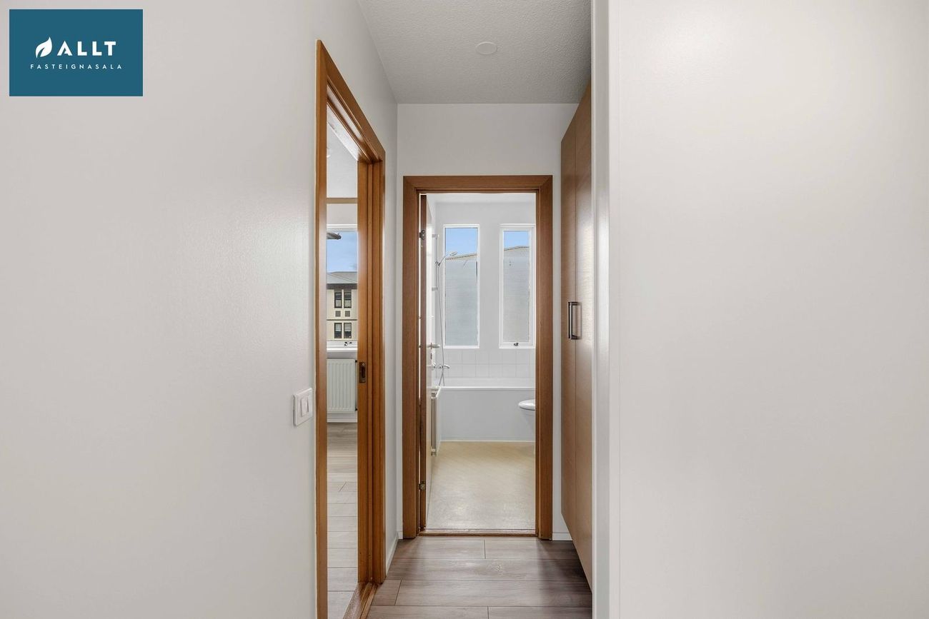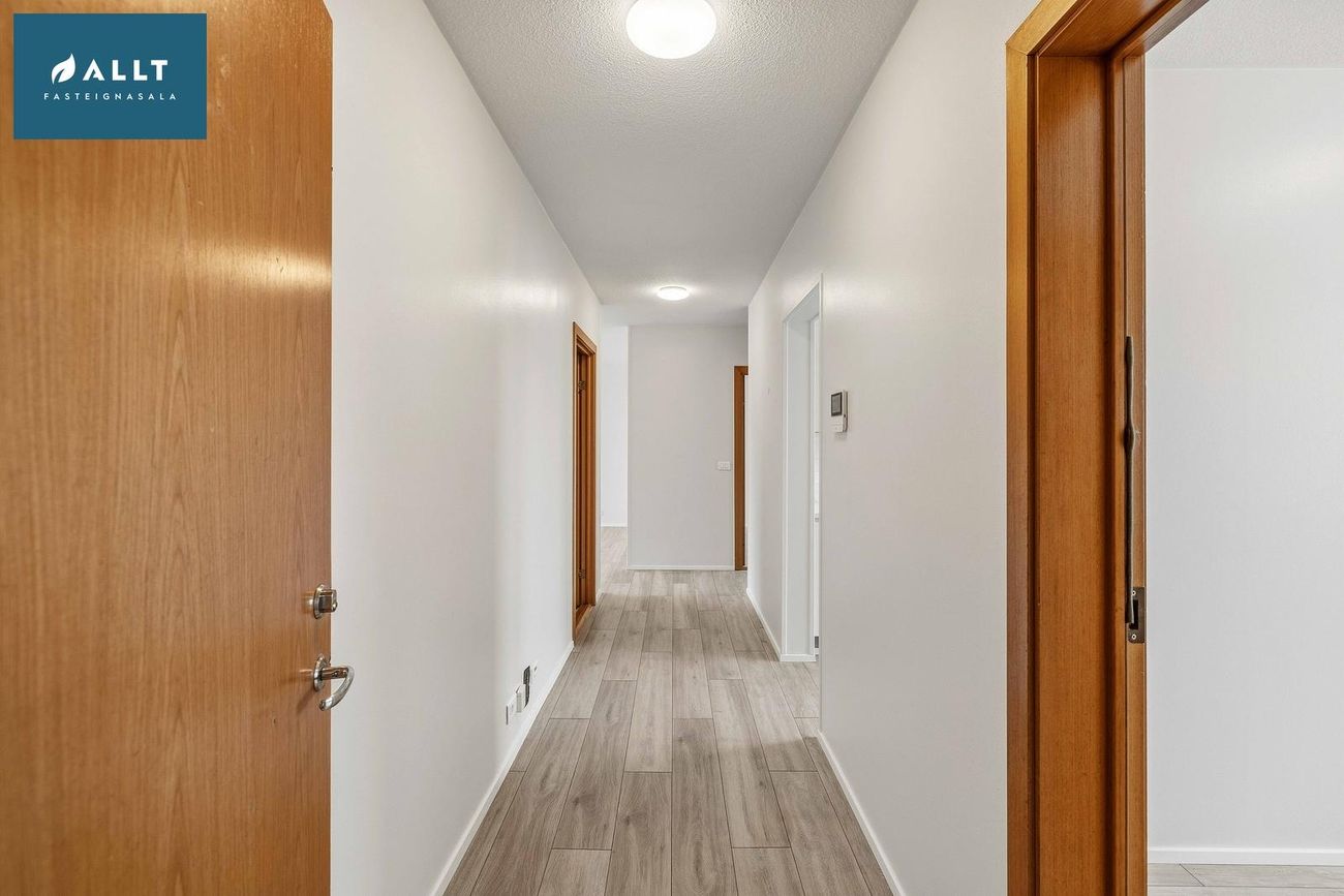 Komið er inn í bjartann og rúmgóðan gang með nýlegu gólfefni.