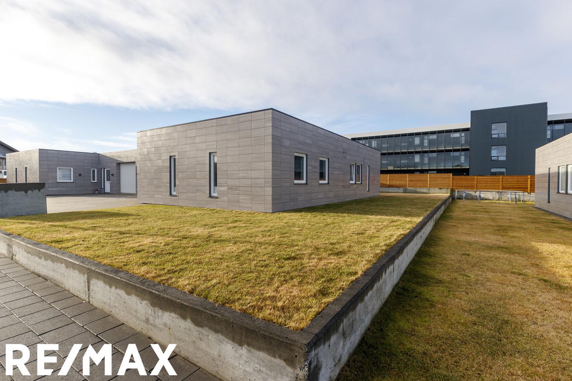 Garður/lóð framan við hús er hellulagt upphitað bílaplan sem uppfyllir skilyrði fatlaðra. Á norðaustur hluta lóðar er grasflötur og aftan við hús til suðvesturs er stór viðar verönd með skjólgirðingu. Búið að að byggja upphitaðann geymsluskúr með svarti klæðningu og tvöfaldri útihurð.