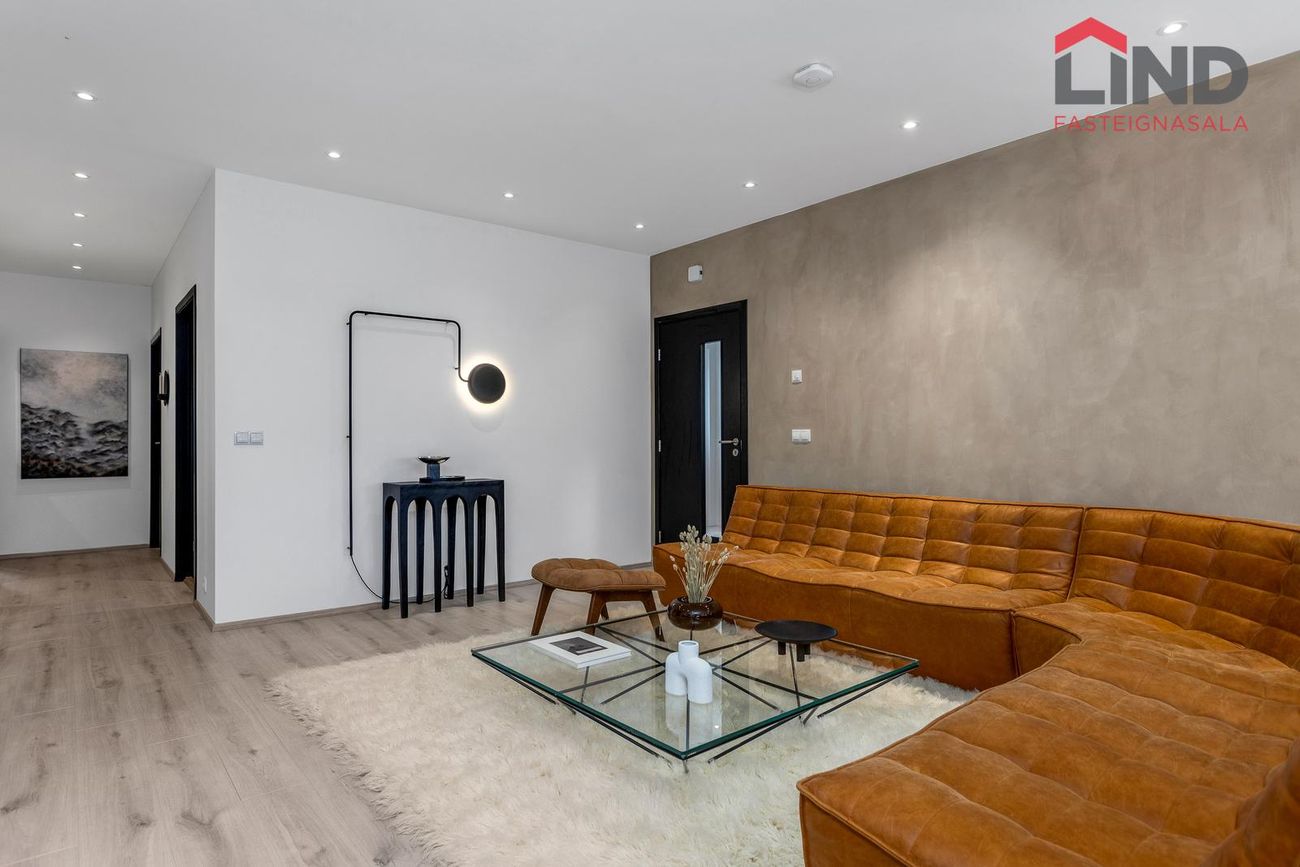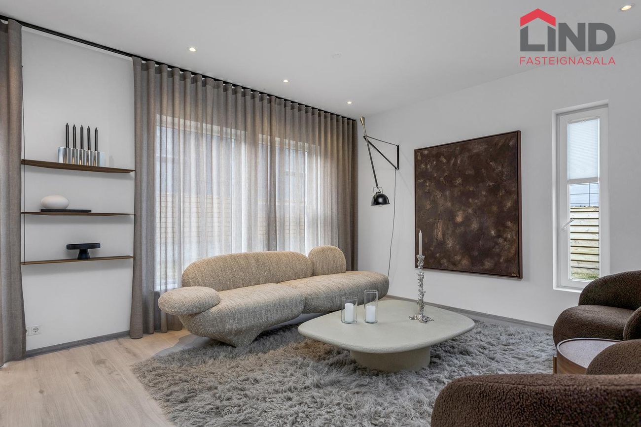 * Innréttingar, gólfefni o.fl.: Innfelld lýsing er í öllum rýmum íbúðarhúsnæðis.