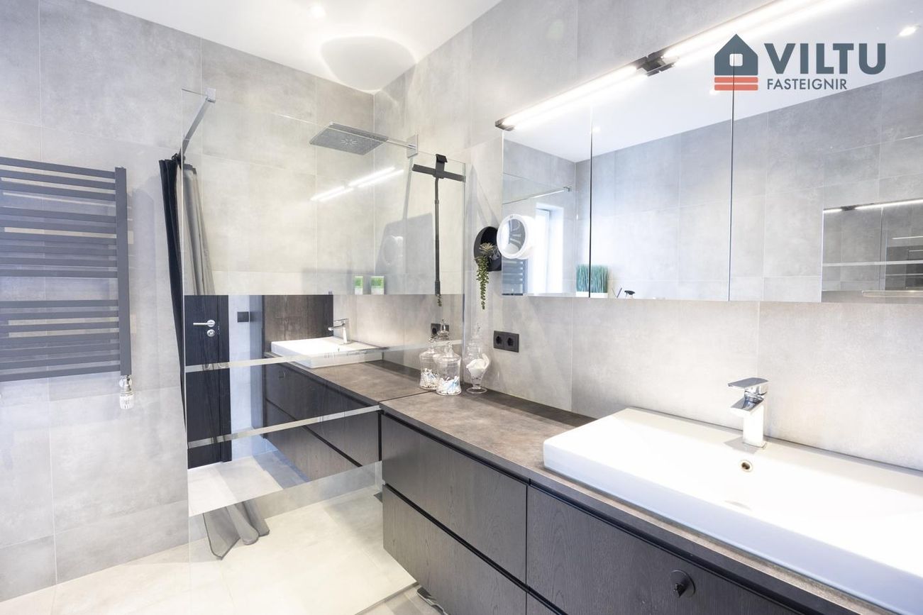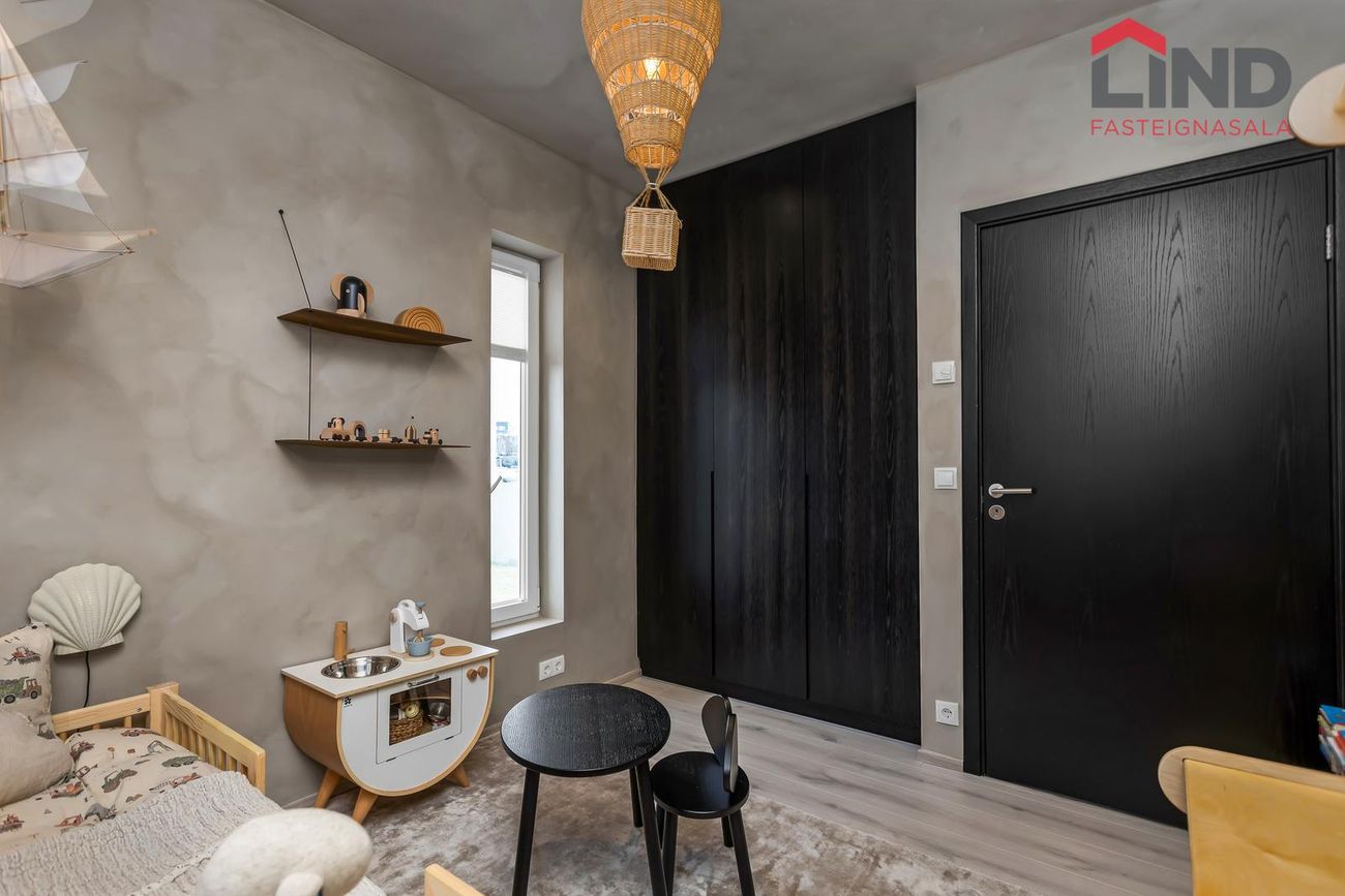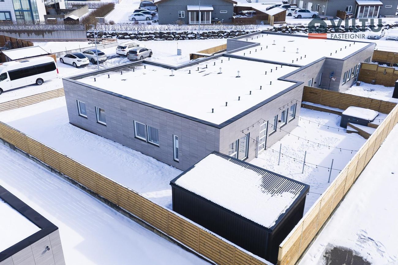 Viltu kynnir Fallegt fimm herbergja parhús á einni hæð að Brimdölum 14 í Innri-Njarðvík. Innangengt er inn í bílskúr og hægt er að ganga út á stóra viðarverönd bæði frá stofu og bílskúr. Einstaklega glæsileg eign byggð 2020. Innan við 5 mín gangur er í leikskóla og grunnskóla. Handan götunnar í hina áttina eru göngustígar við sjávarsíðuna og yndislegt umhverfi. Eignin er skráð hjá Þjóðskrá Íslands alls 185 m2. Íbúð er skráð 143,5 m2 og bílskúr 41,5 m2.