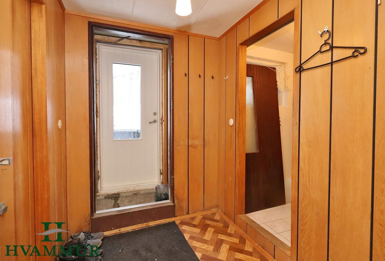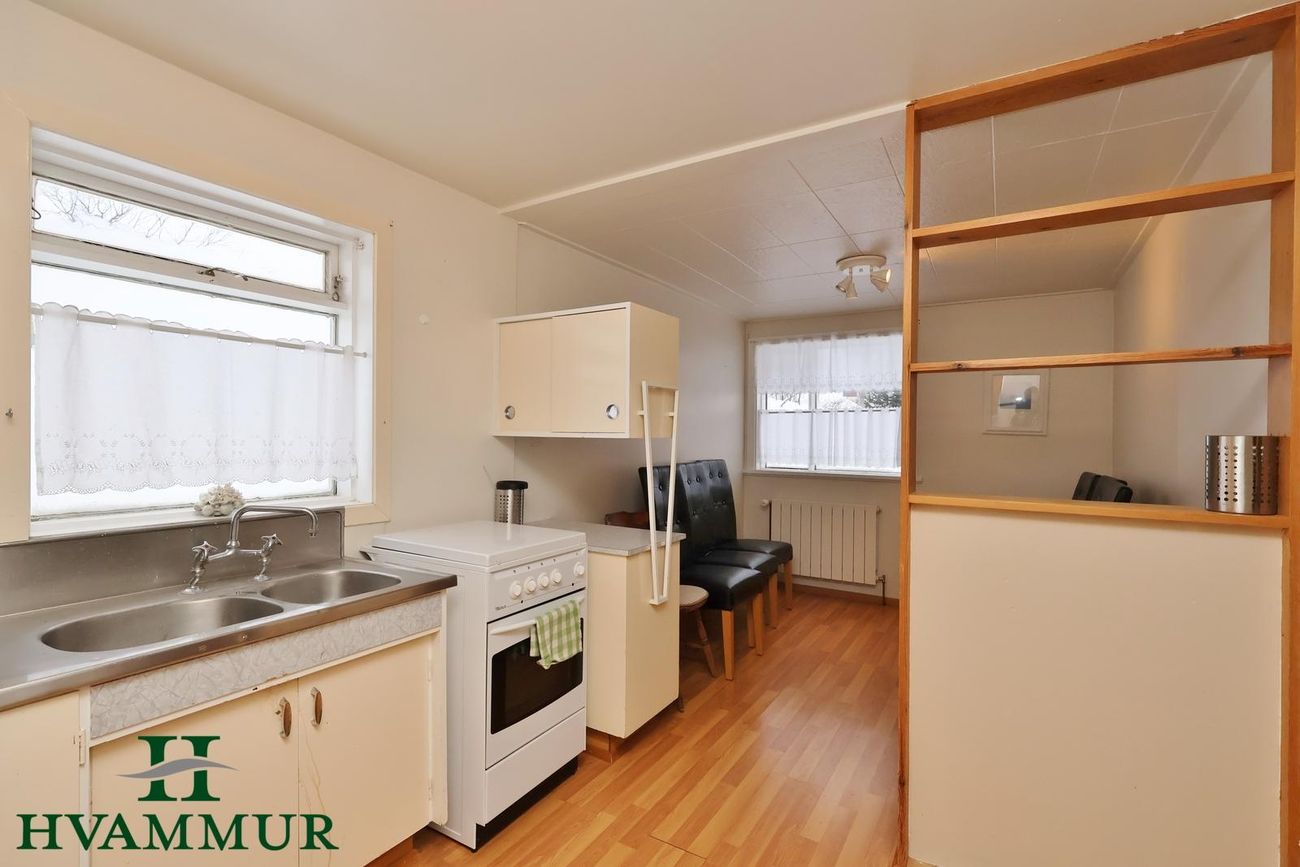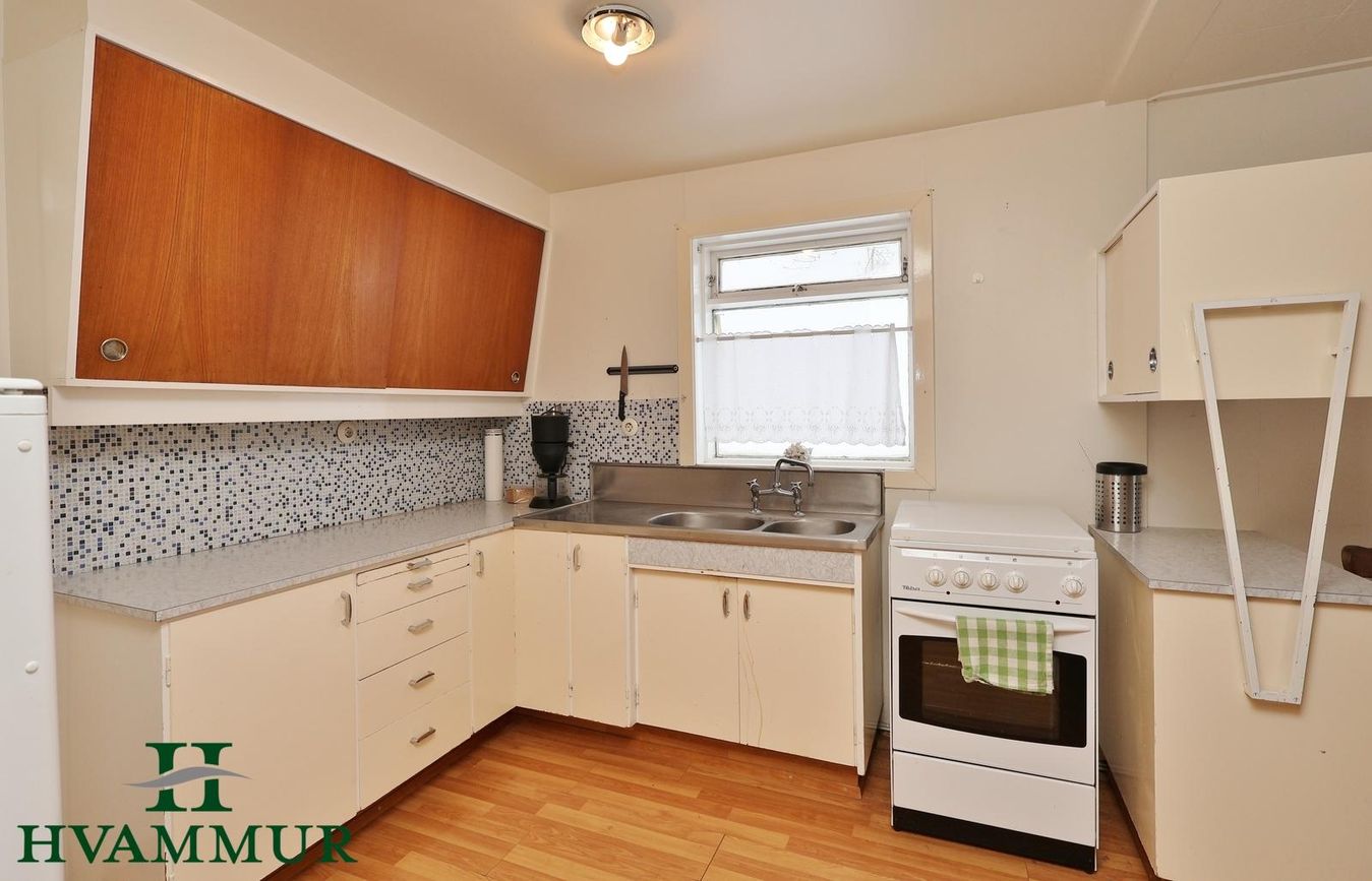 ** Eignin getur verið laus til afhendingar fljótlega ** Eignin skiptist í forstofu, þvottahús, gang, eldhús, búr, stofu, tvö svefnherbergi, baðherbergi og kaldageymslu.