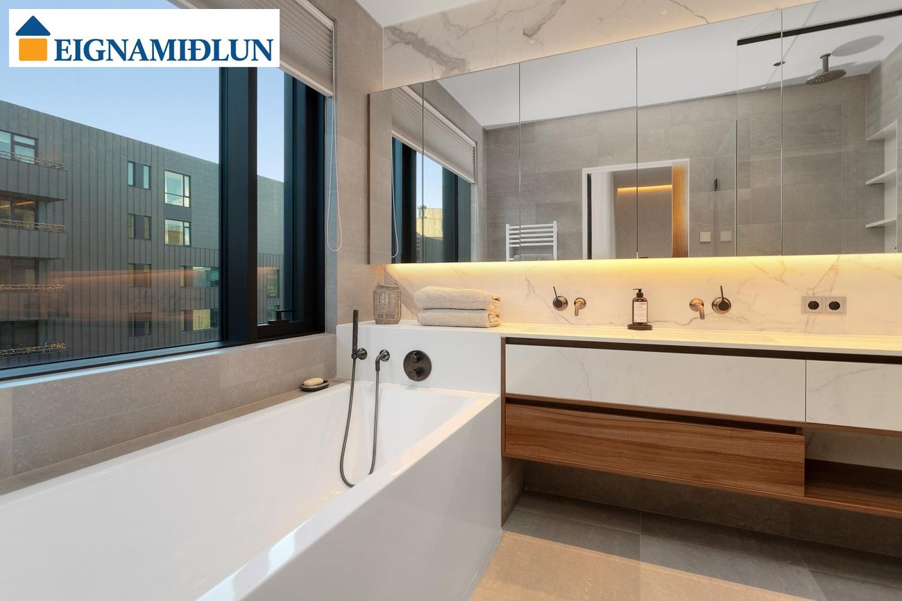 Glæsileg íbúð á 4. hæð ásamt tveimur bílastæðum í bílakjallara. Bryggjugata 2 - Austurhöfn er glæsileg bygging með metnaðarfullri hönnun á einstökum reit við Reykjavíkurhöfn. Í engu er til sparað, hvort sem litið er til innréttinga, tækja, þjónustu eða frágangs innan sem utan. 2 sérmerkt stæði í lokaðri bílageymslu fylgja með ásamt 9,6 fm sérgeymslu í kjallara.***