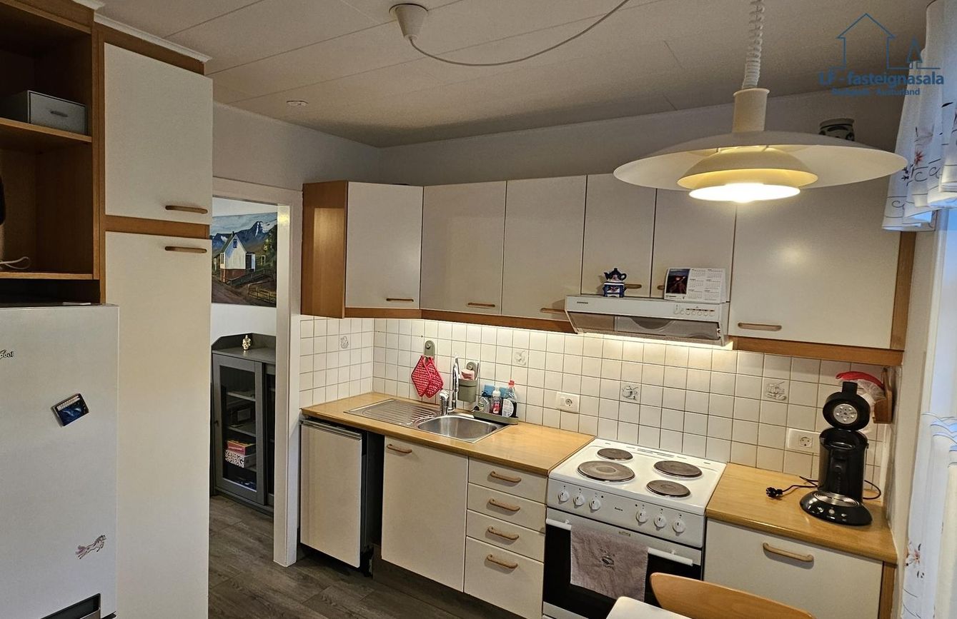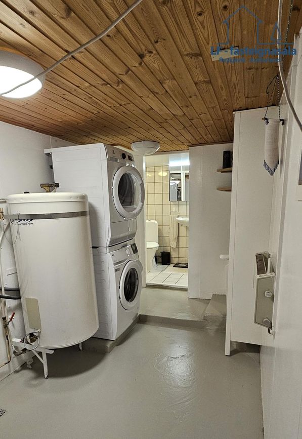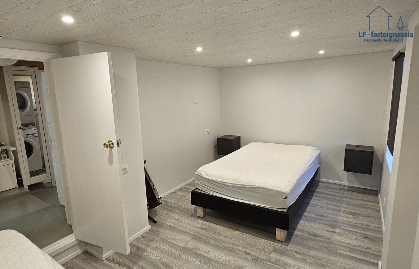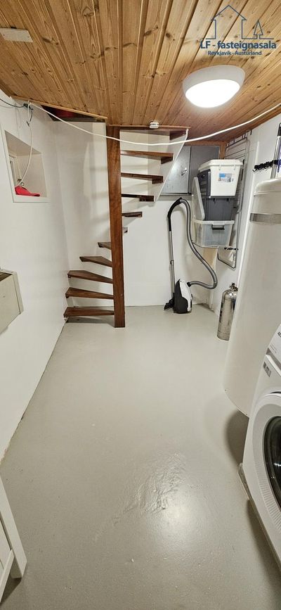 Í kjallaranum er einnig snyrtilegt þvottahús með máluðu gólfi.