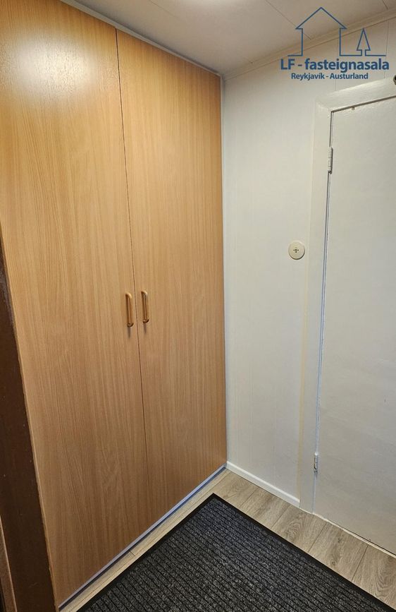 Forstofa og búr eru í viðbyggingu ofan við húsið. í forstofunni er góður fataskápur.
