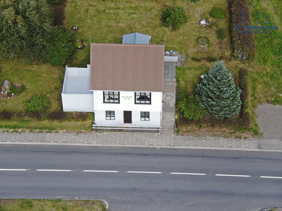 Gróin lóð með trjágróðri tilheyrir húsinu.