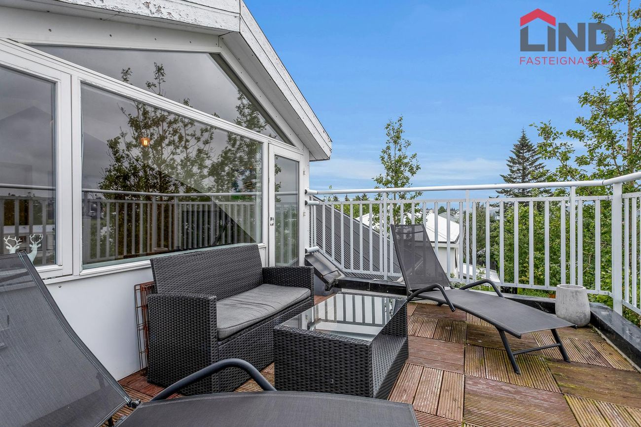 Sex herbergja íbúð, 134,5 fm, sérinngangur, tveir svalir, hægt að skipta í tvær eignir.