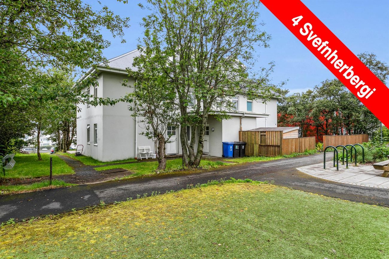 Tvö hæð íbúðar með forstofu, eldhúsi, stofu, baðherbergi, fjögur svefnherbergi og geymslu/þvottahús. Neðri hæð með hjónaherbergi og útgang á svalir, rishæð með sjónvarpsholi og þremur svefnherbergjum.