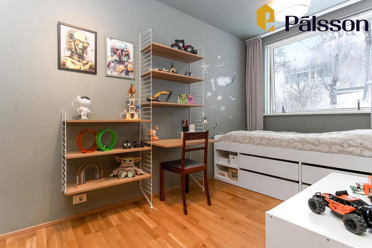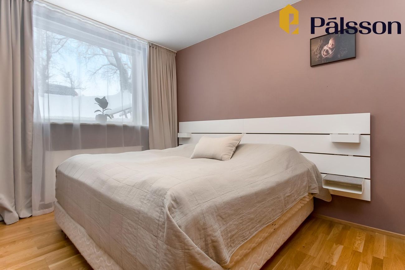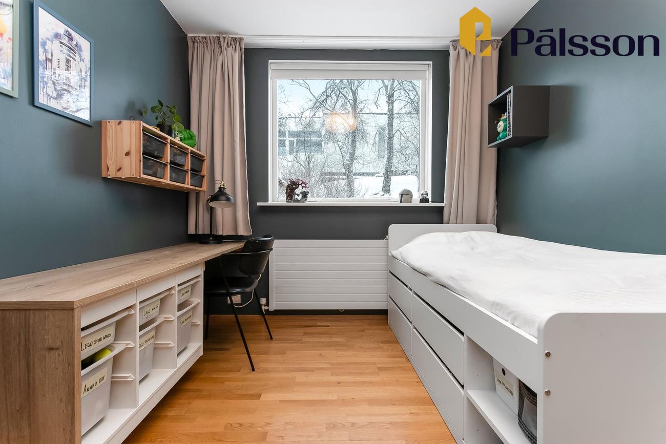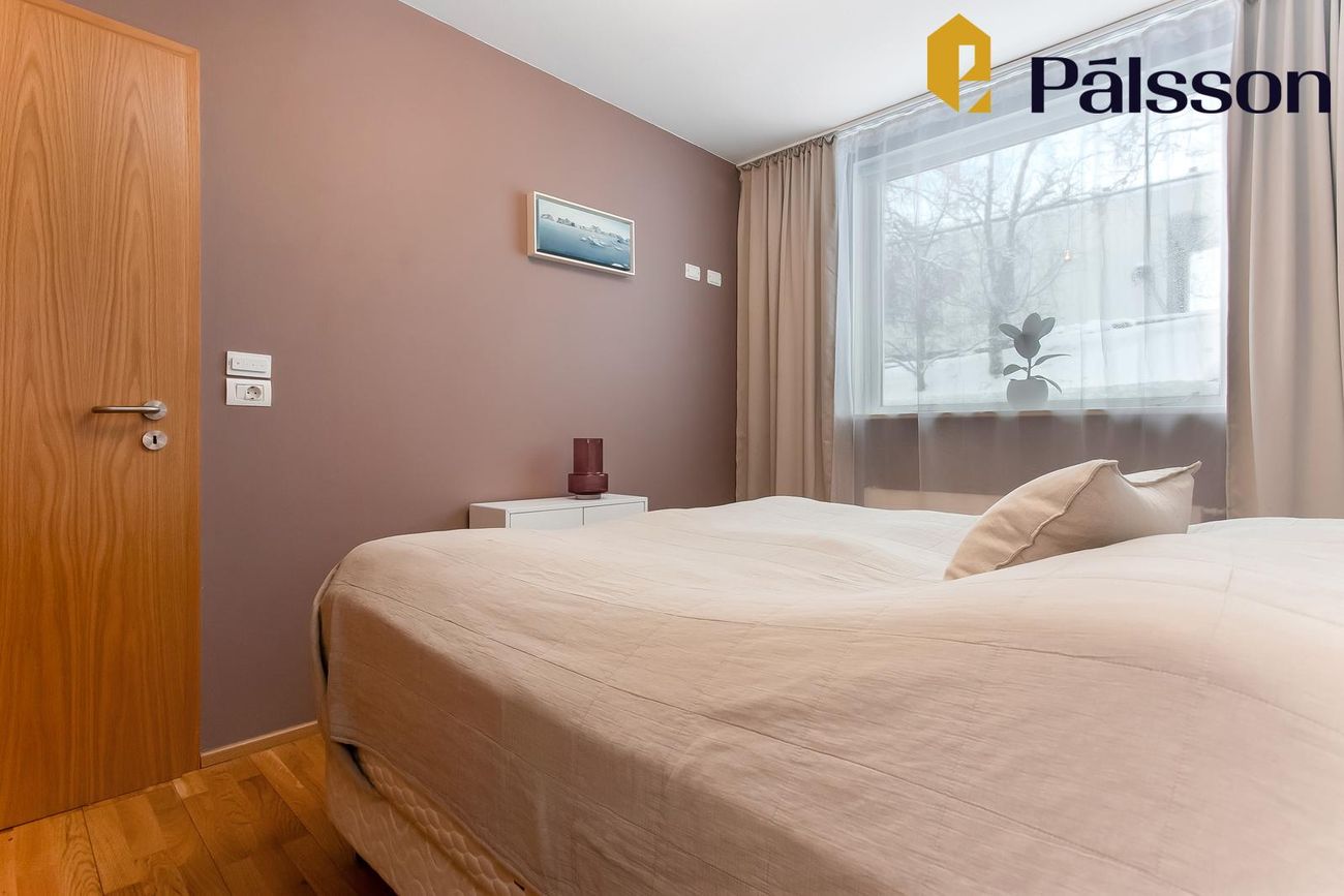 Hjónaherbergi og barnaherbergi með parketgólfi og fataskápum. Eitt herbergi með útgöngu út í garð.