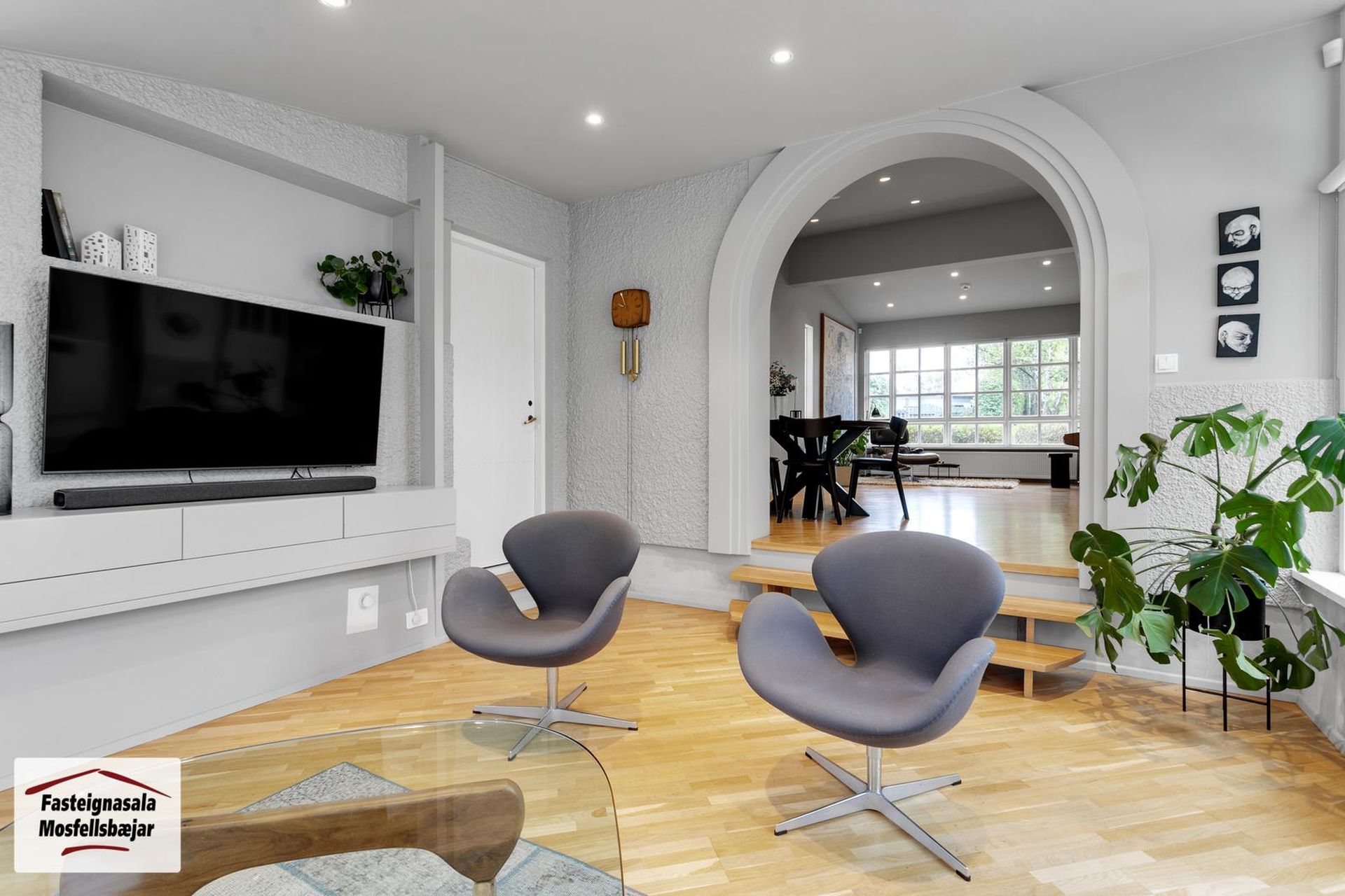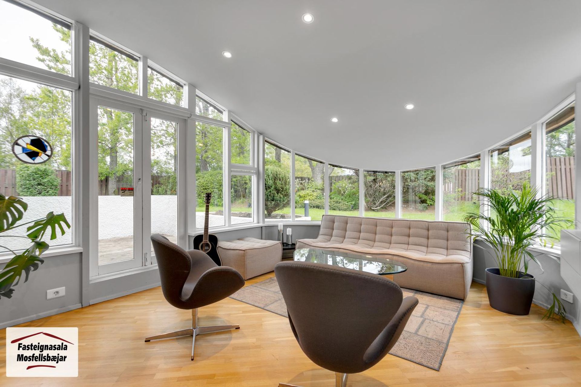Staðsett í grónu og rólegu hverfi í Mosfellsbæ, nálægt gönguleiðum, skóla, verslun og þjónustu.