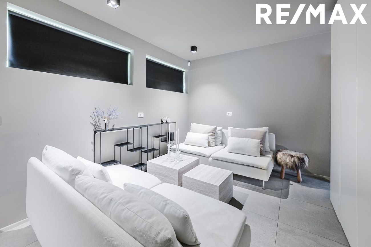 Stofa með parketgólfi og snjalllýsingu stýrðri með appi.