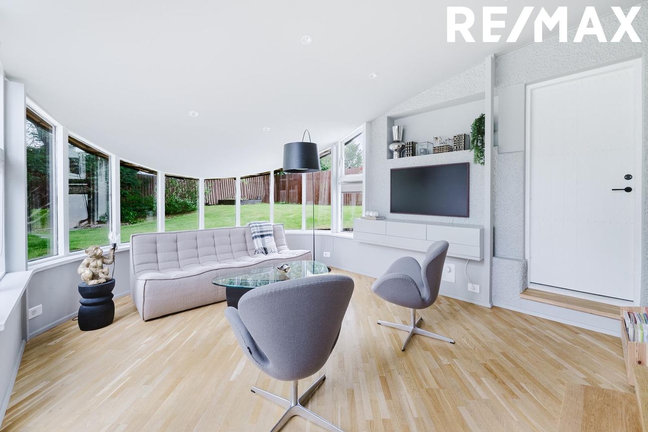 Einbýlishús með forstofu, stofu, borðstofu, eldhús, sólstofu, þrjú svefnherbergi, baðherbergi, þvottahús og bílskúr. Loft rými og góð lofthæð.