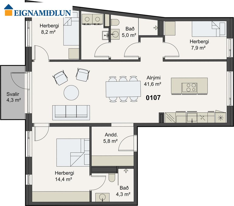 | 4 | 116,40 m² | 124.900.000 kr. 27. mars 2026 | 119.900.000 kr. 18. júní 2025 |
