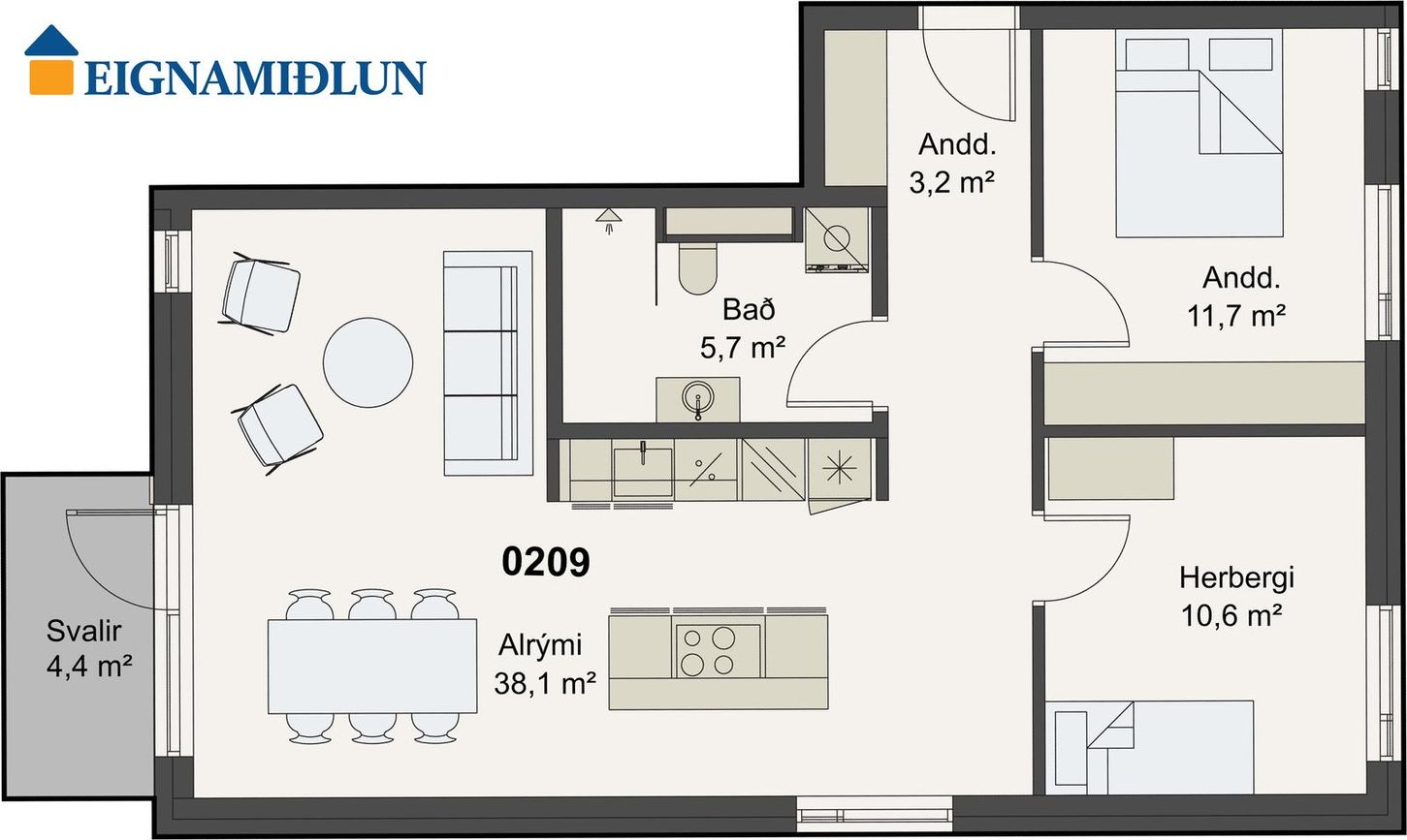 | 3 | 82,20 m² | 87.900.000 kr. 2. apríl 2026 | 21.000.000 kr. 6. janúar 2026 |