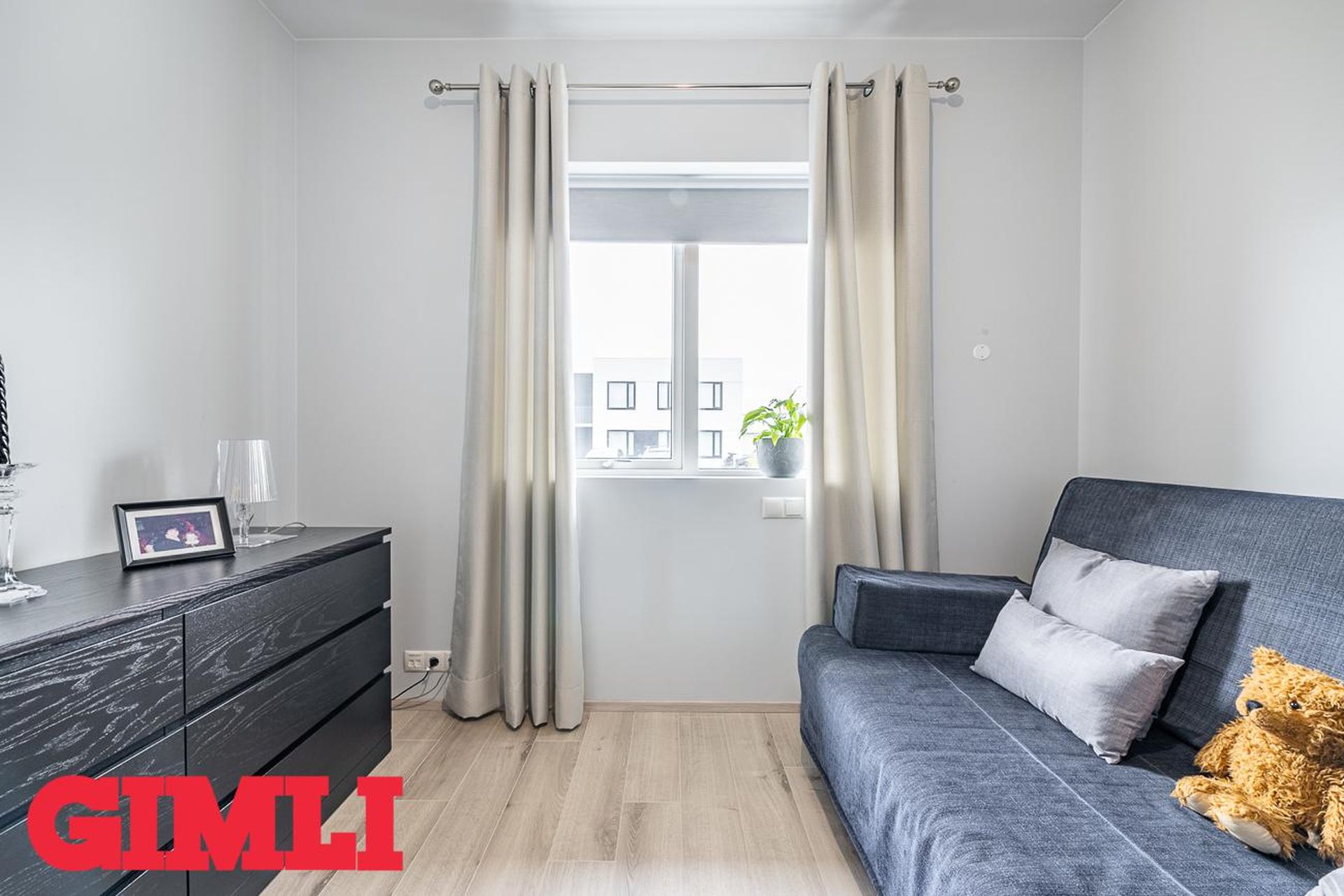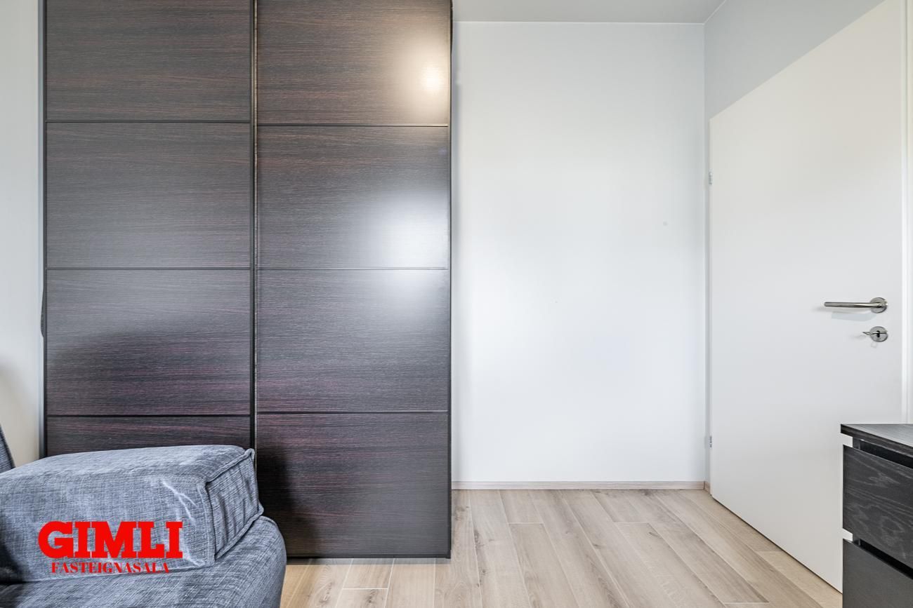 Geymsla/svefnherbergi: Skráð sem geymsla á teikningum en mjög gott (9,1 fm) með stórum glugga og nýtist sem svefnherbergi með fataskáp og harðparketi á gólfi.