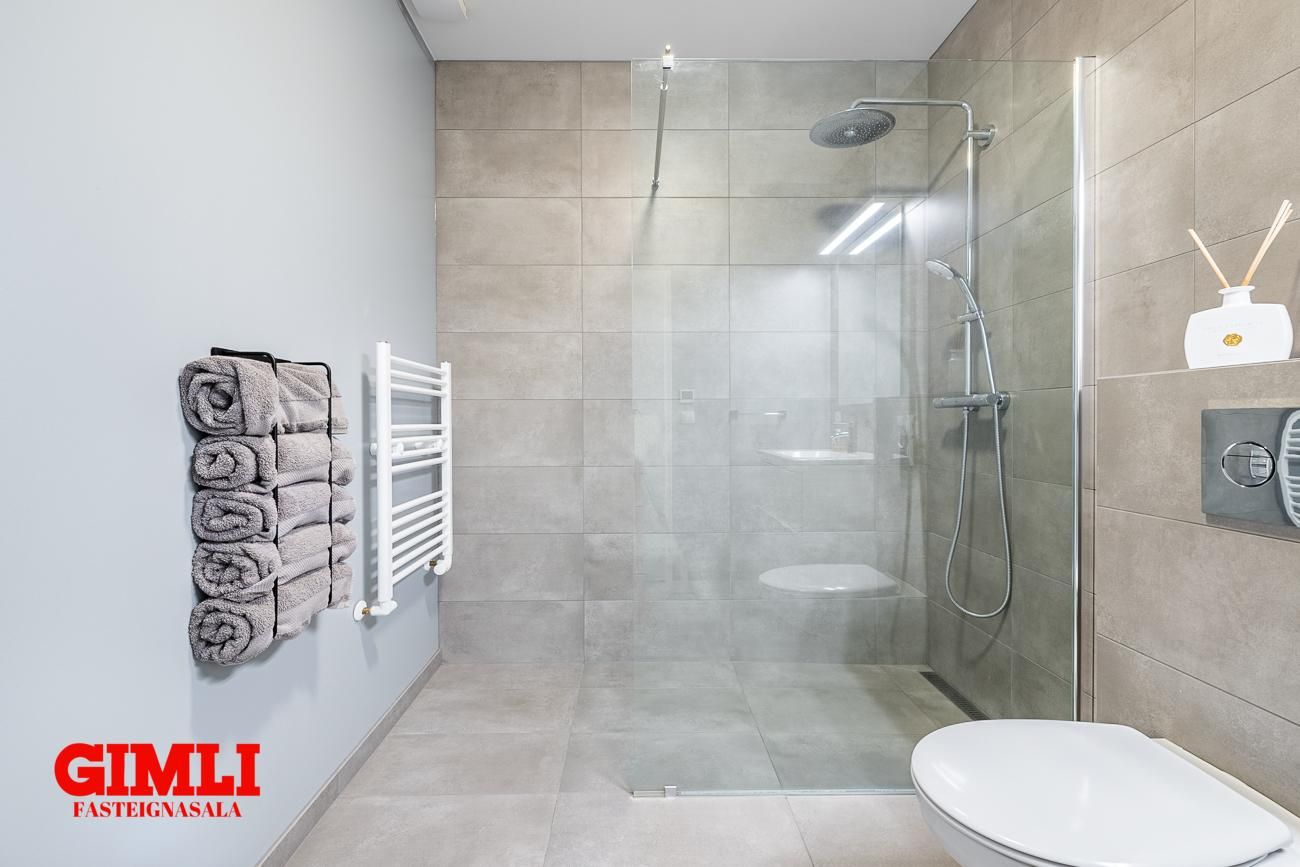 Þvottahús: Flísalagt gólf, innrétting með vaski þar sem gert er ráð fyrir þvottavél og þurrkara í vinnuhæð. Lagnagrind er þvottahúsinu. Gólfhiti er í öllum rýmum.