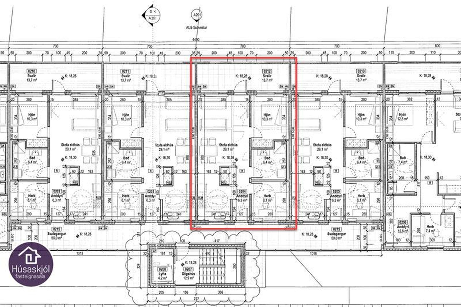 | 4 | 103,30 m² | 63.900.000 kr. 15. maí 2025 | 62.000.000 kr. 4. júlí 2025 |