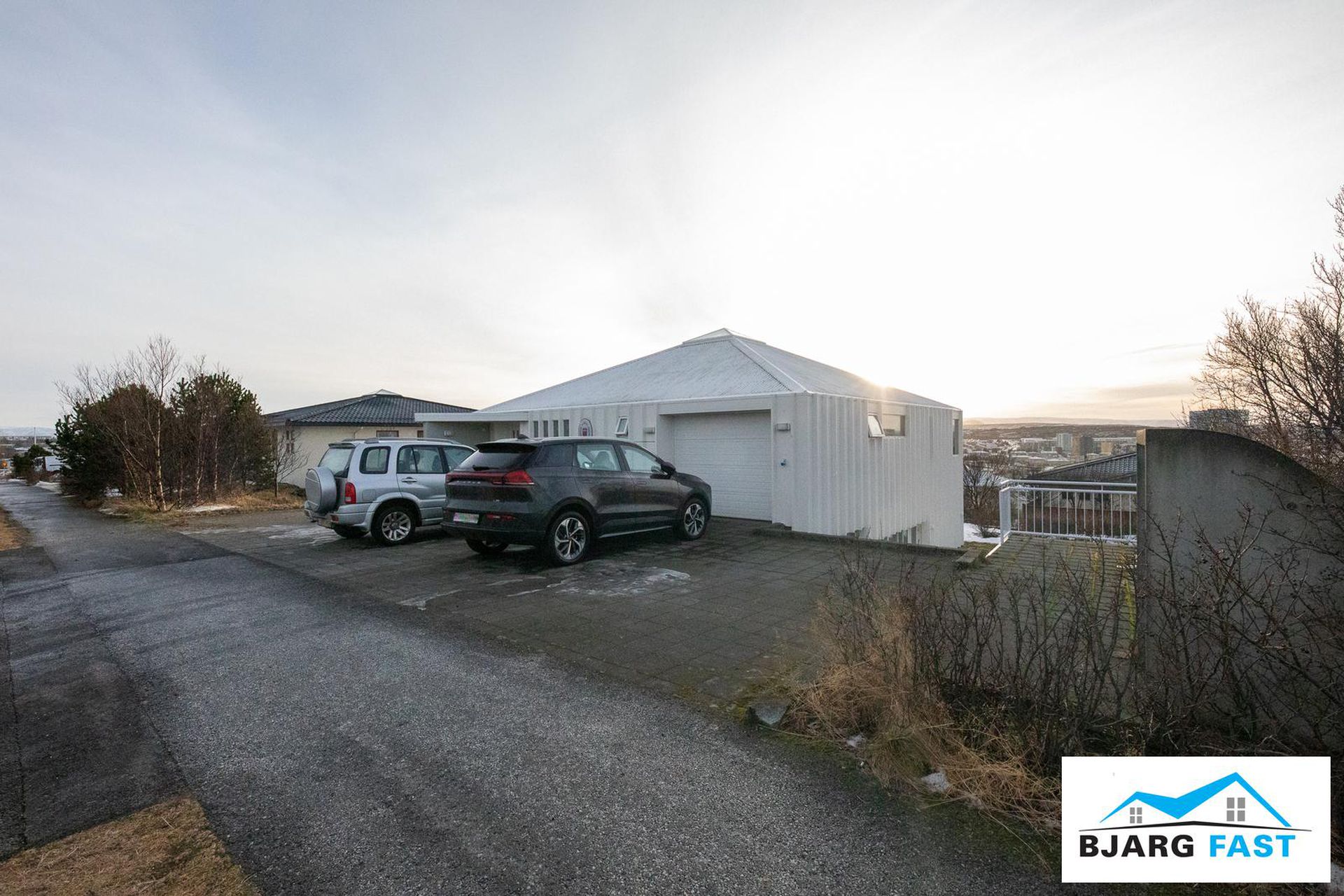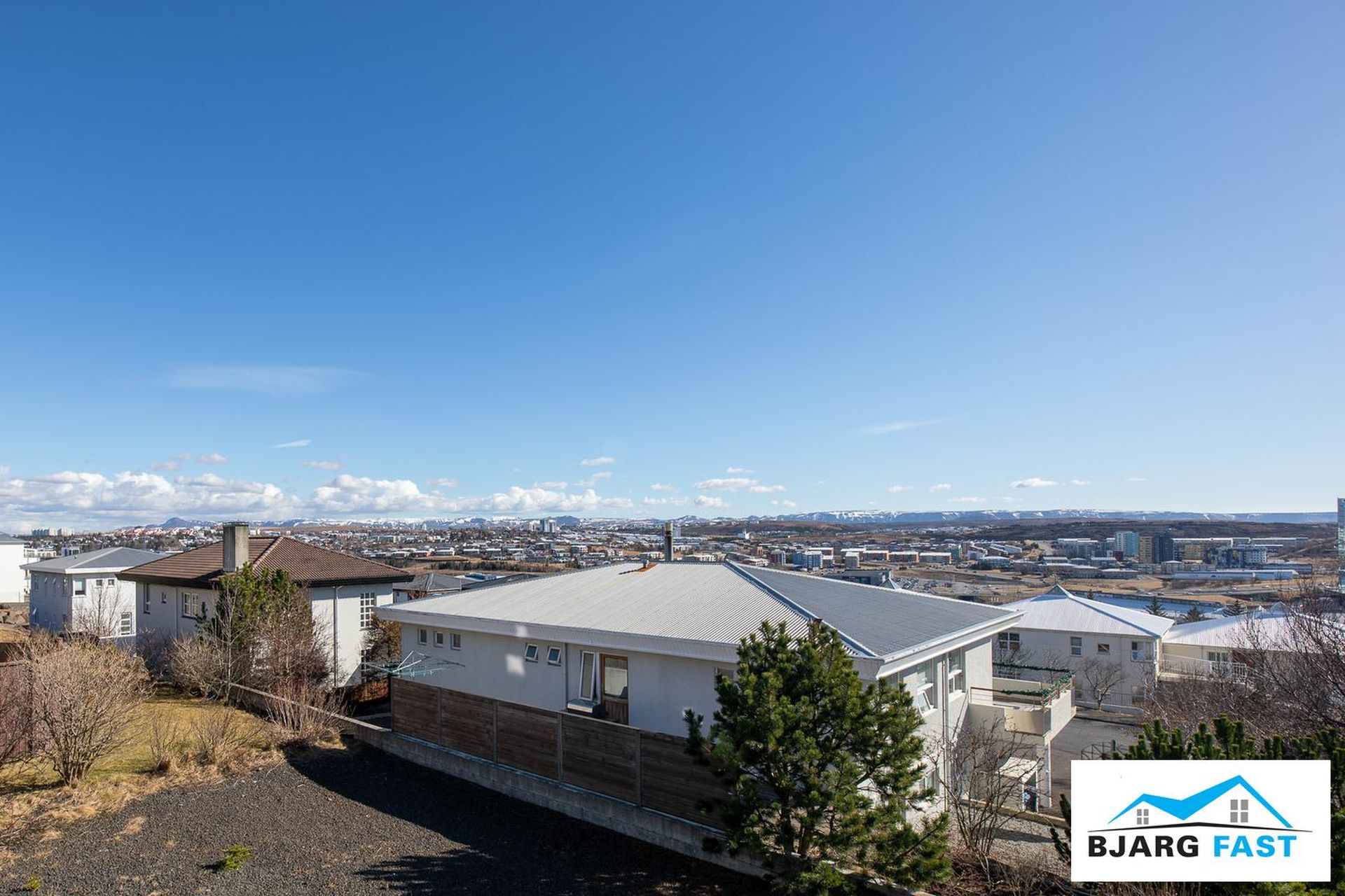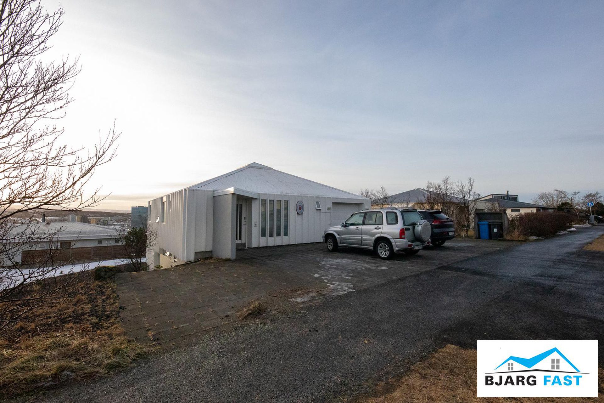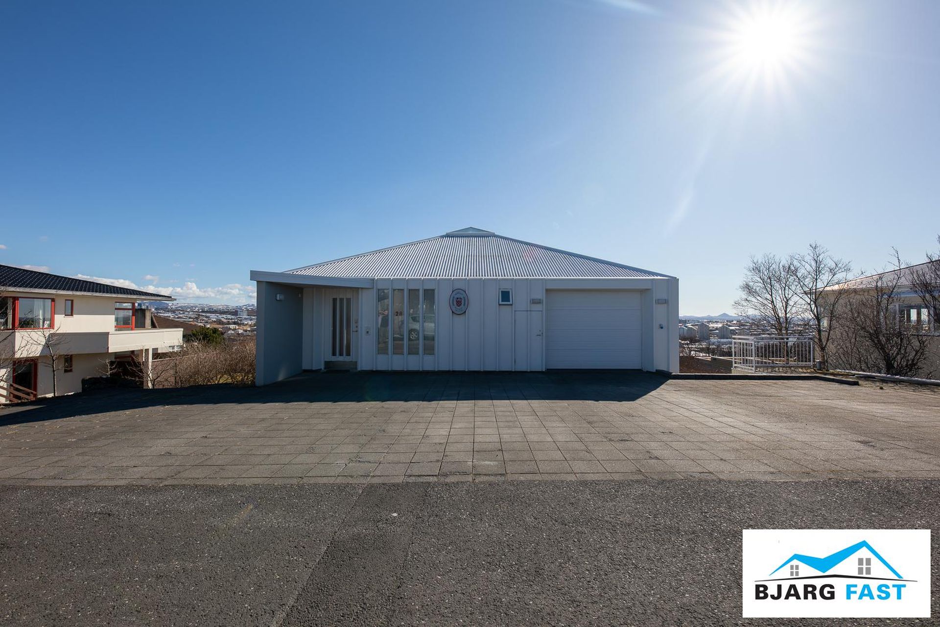 Gengið er inn á efri hæð hússins frá Digranesheiði: