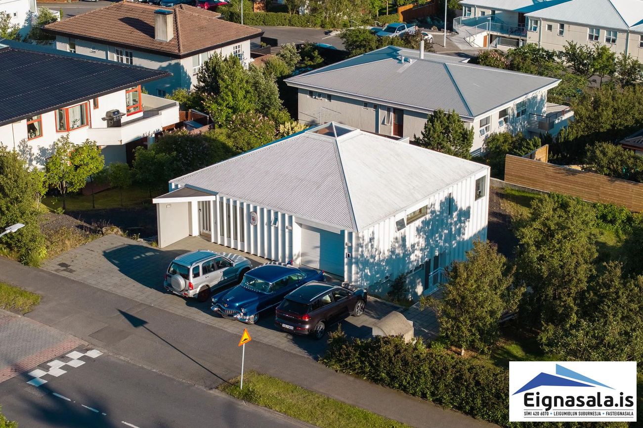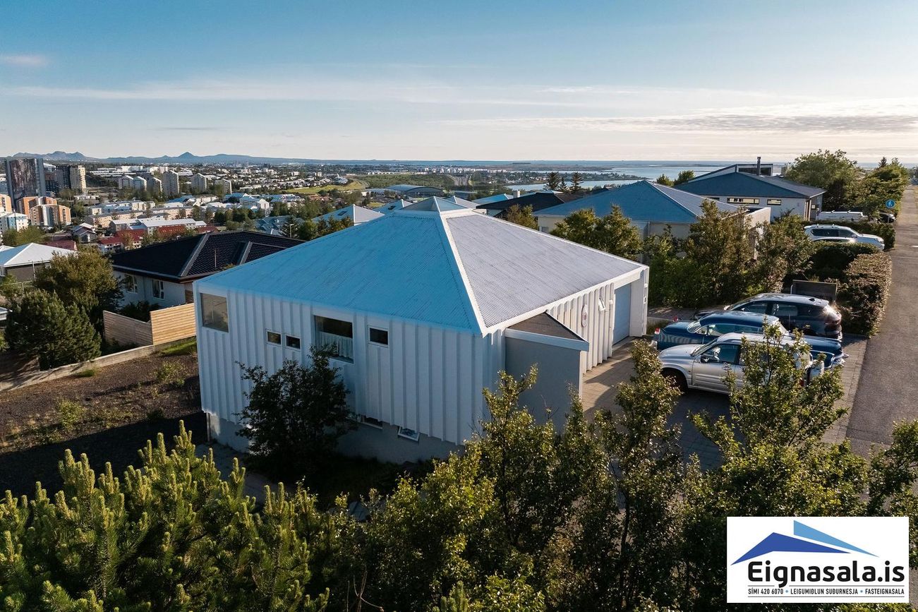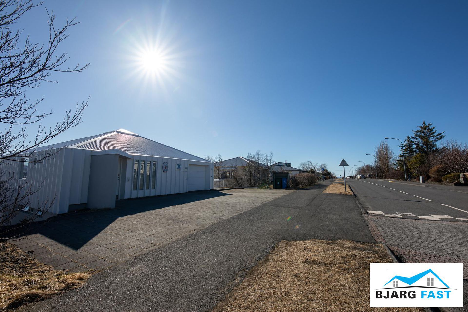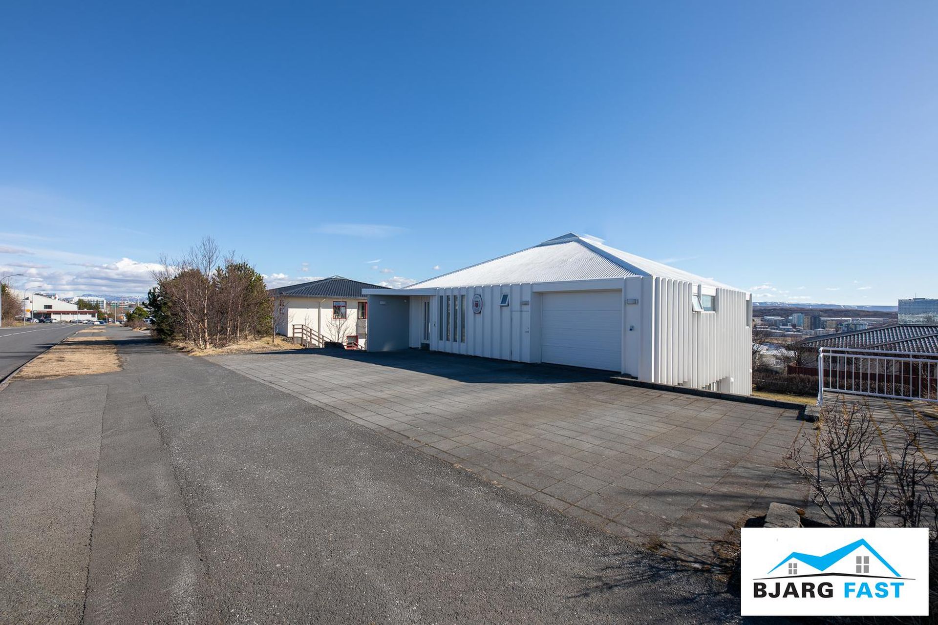 Gengið er inn á efri hæð hússins frá Digranesheiði: