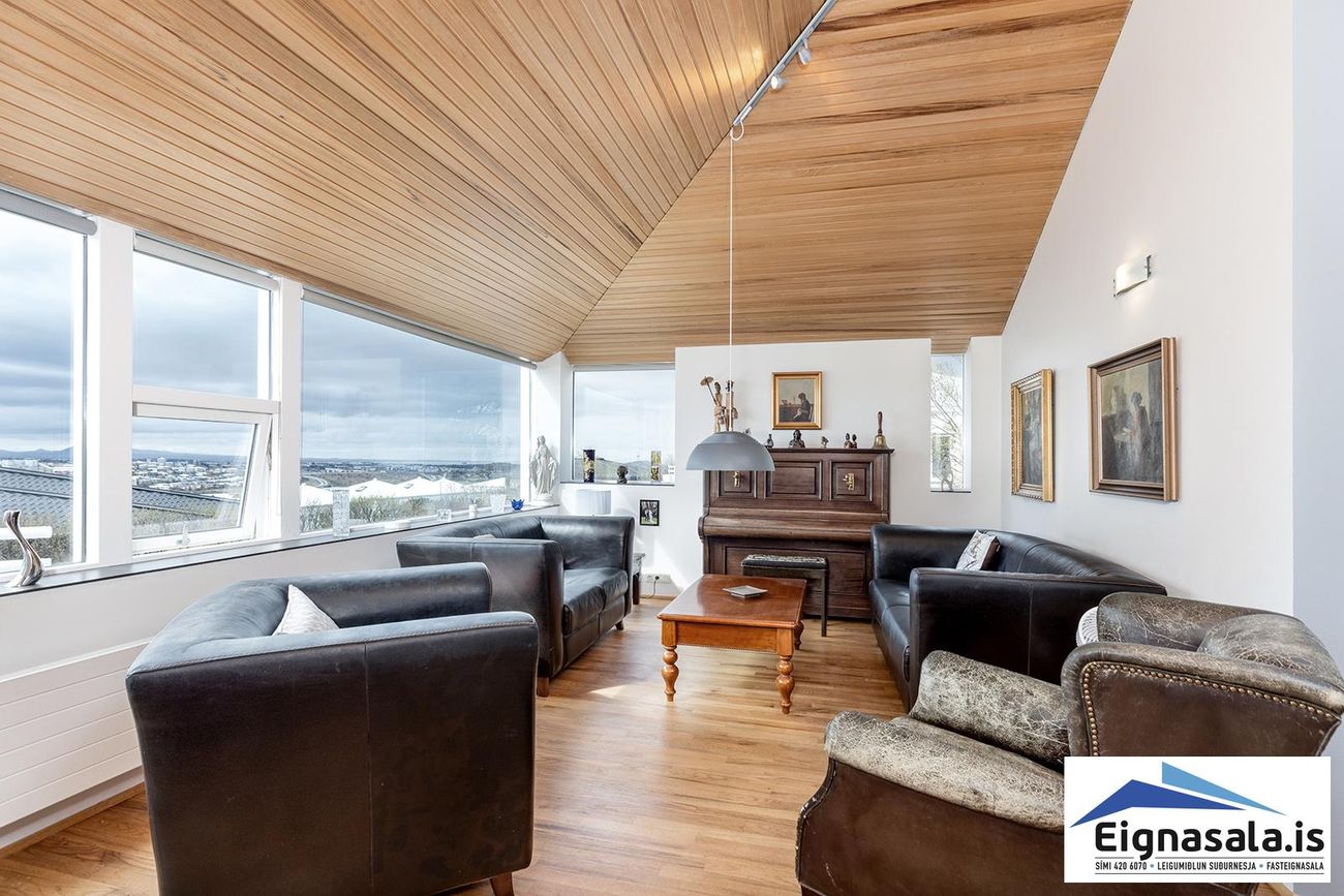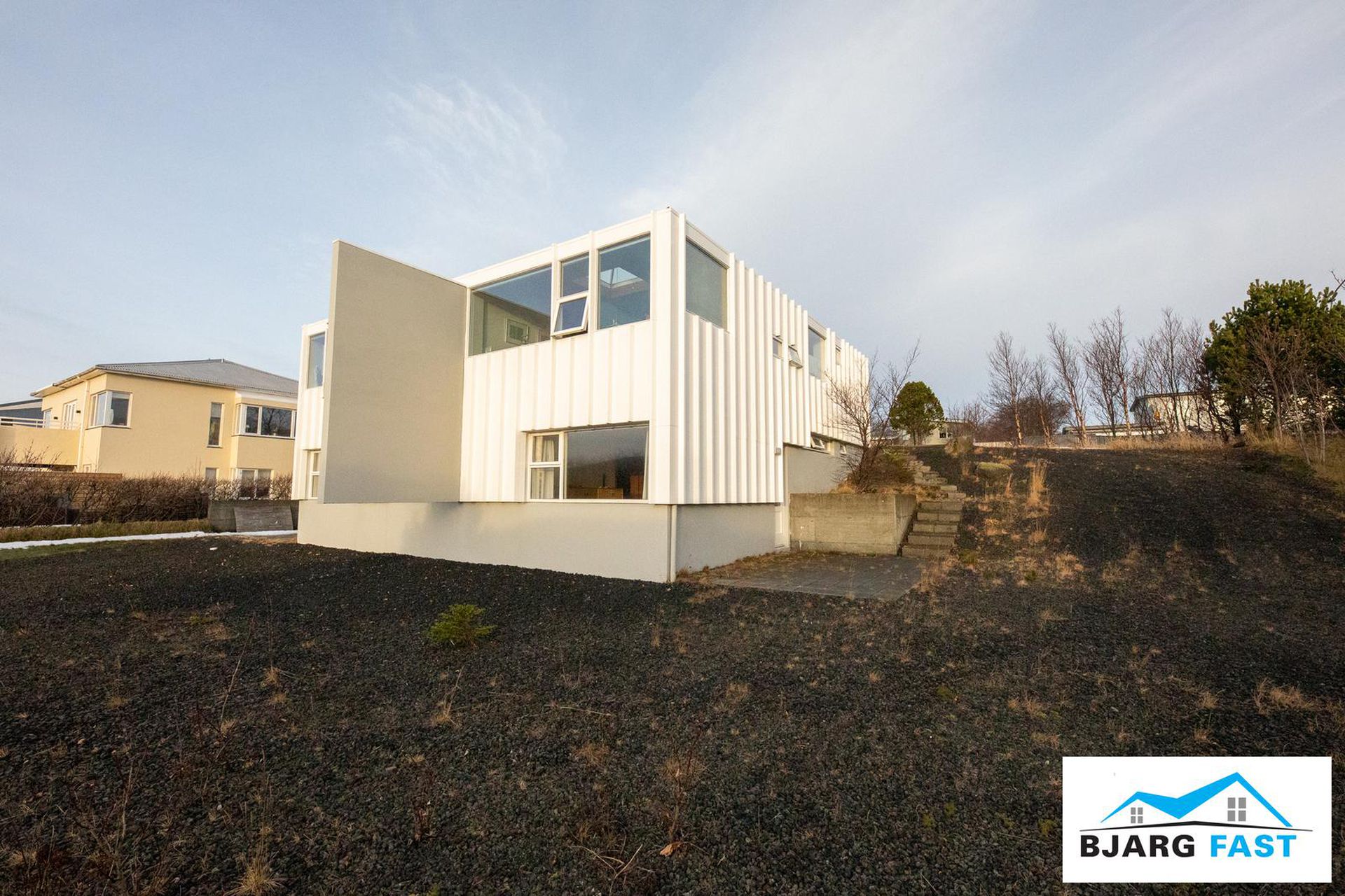 Einstök hönnun, 229 fm., vandað, tveggja hæða einbýlishús á frábærum útsýnisstað í suðurhlíðum Kópavogs.