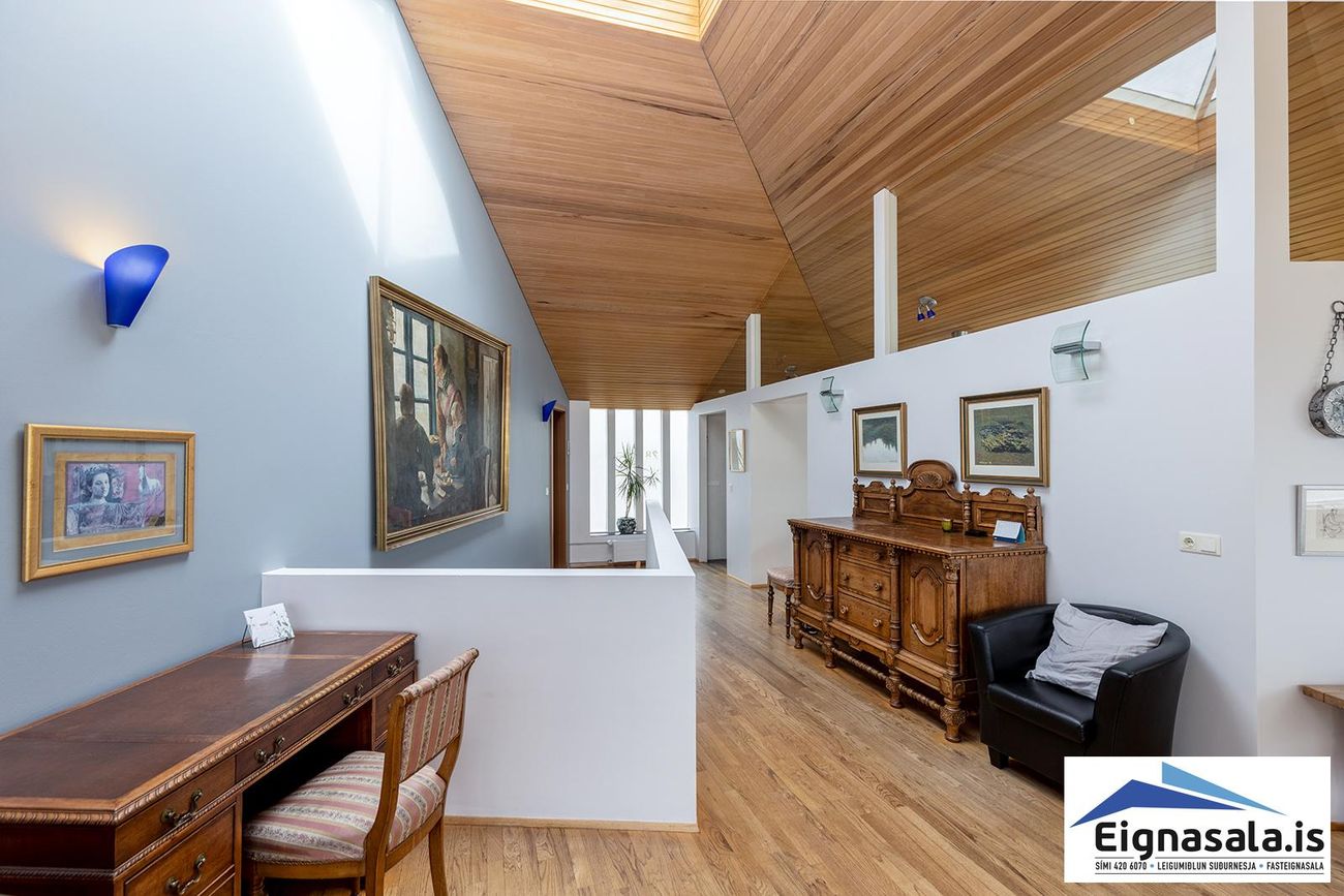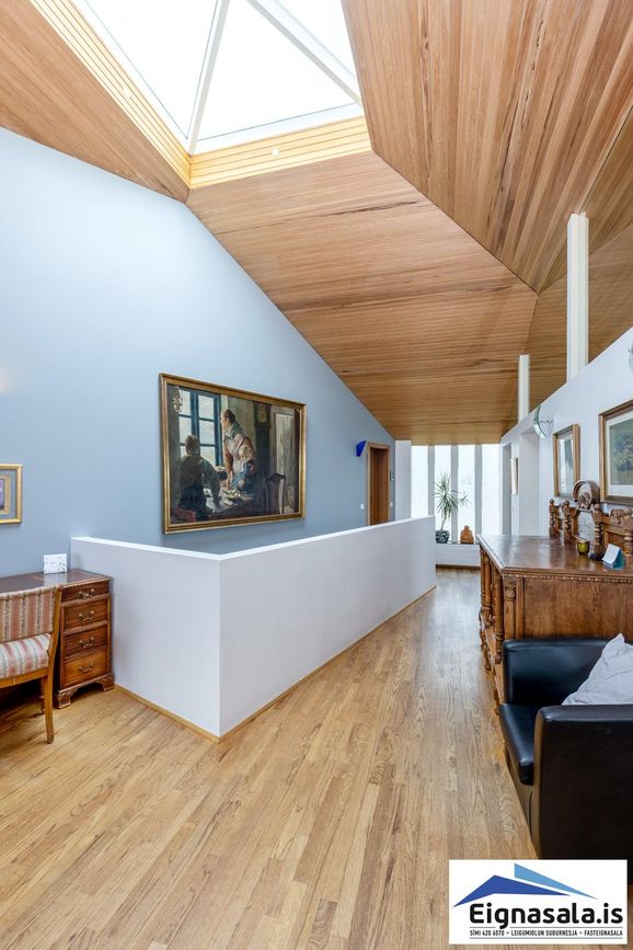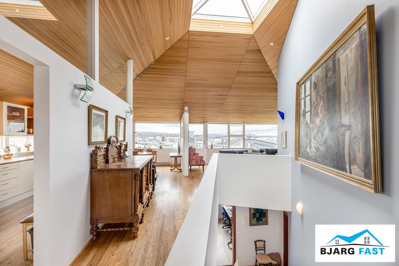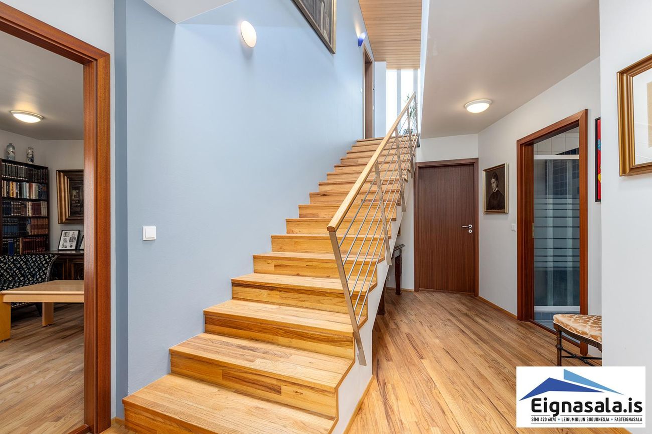 Gólfefni íbúðarinnar er geignheilt eikarparket á baðherbergjum eru flísar. Stigi milli hæða er parhetlagður.