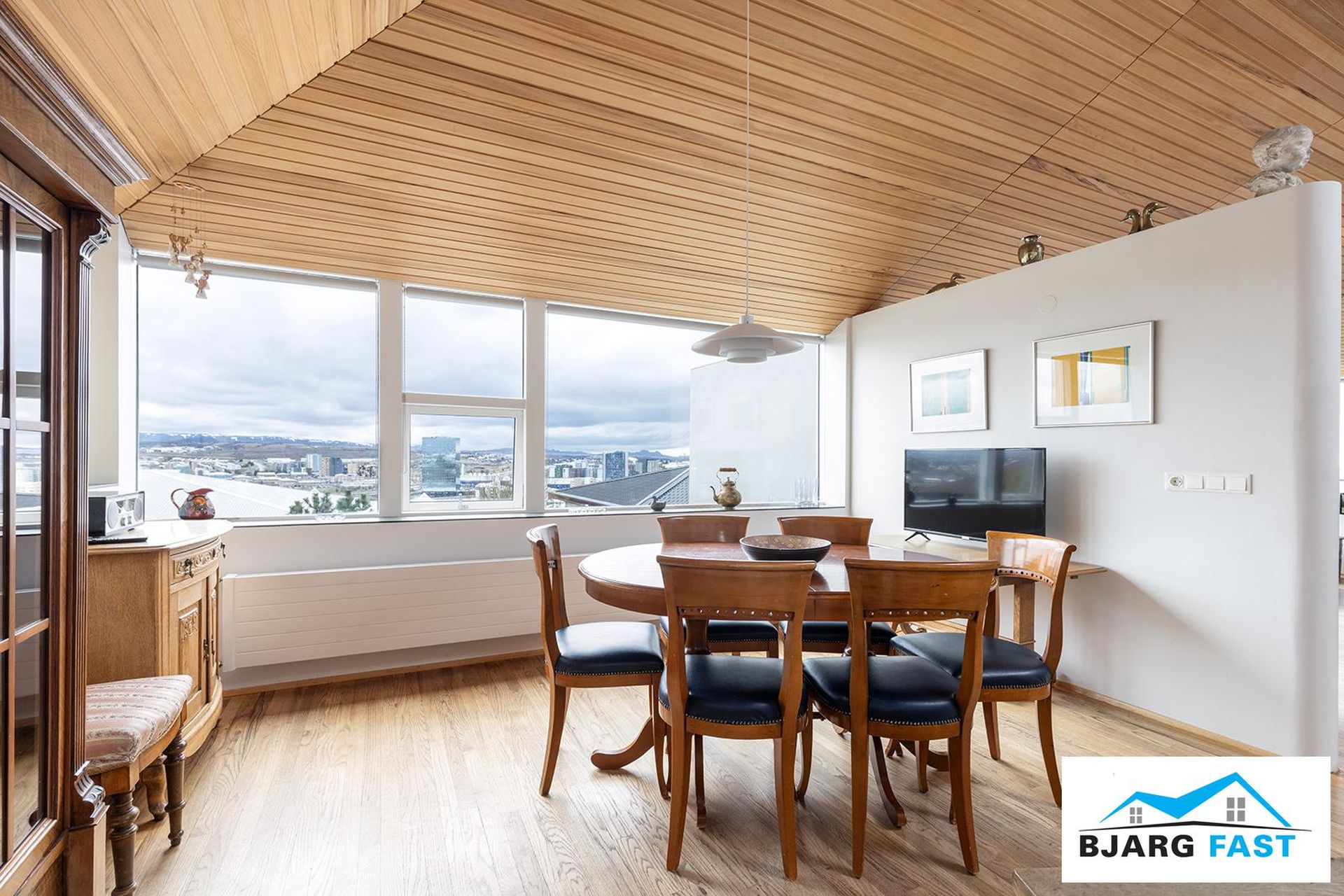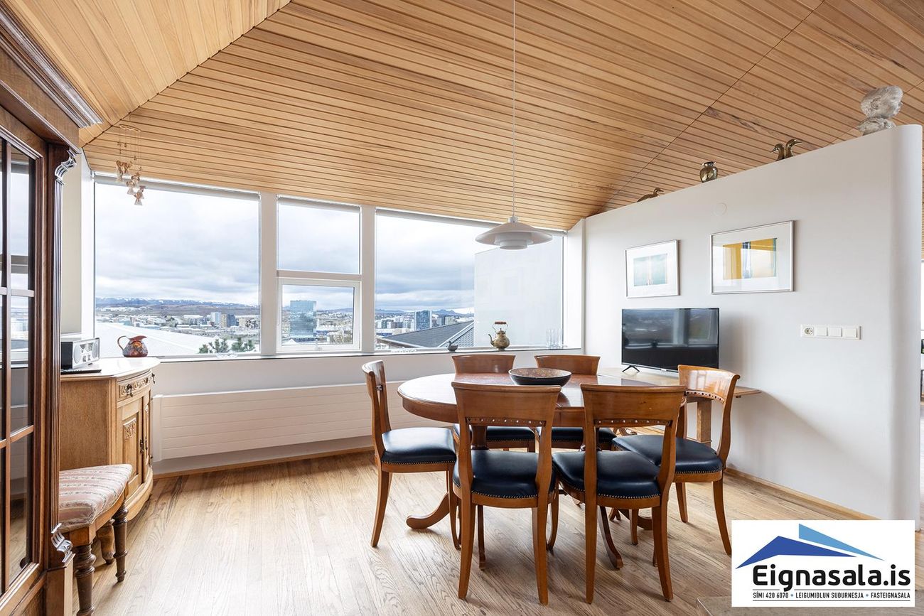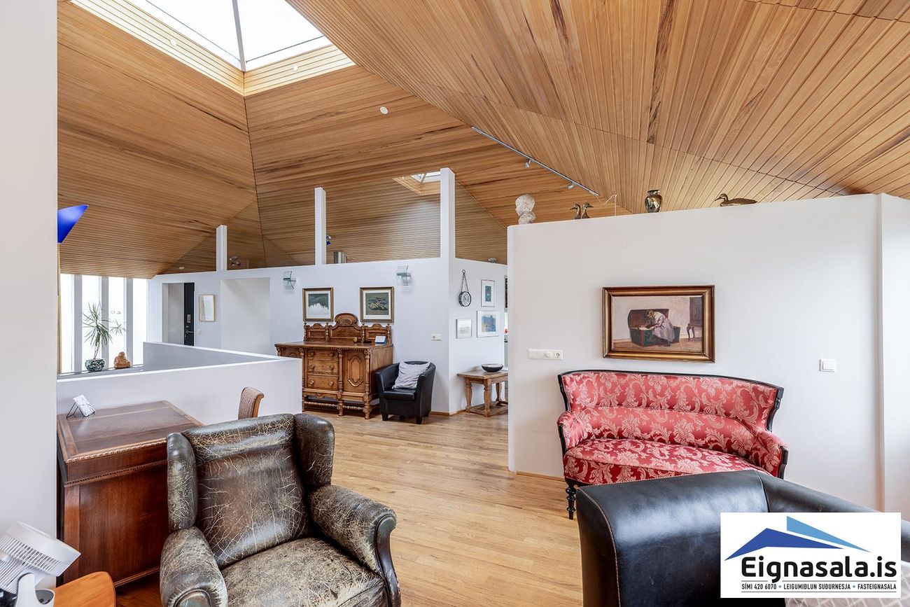 Gólfefni íbúðarinnar er geignheilt eikarparket á baðherbergjum eru flísar. Stigi milli hæða er parhetlagður.
