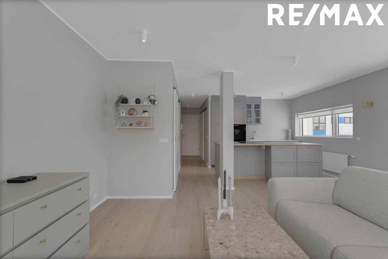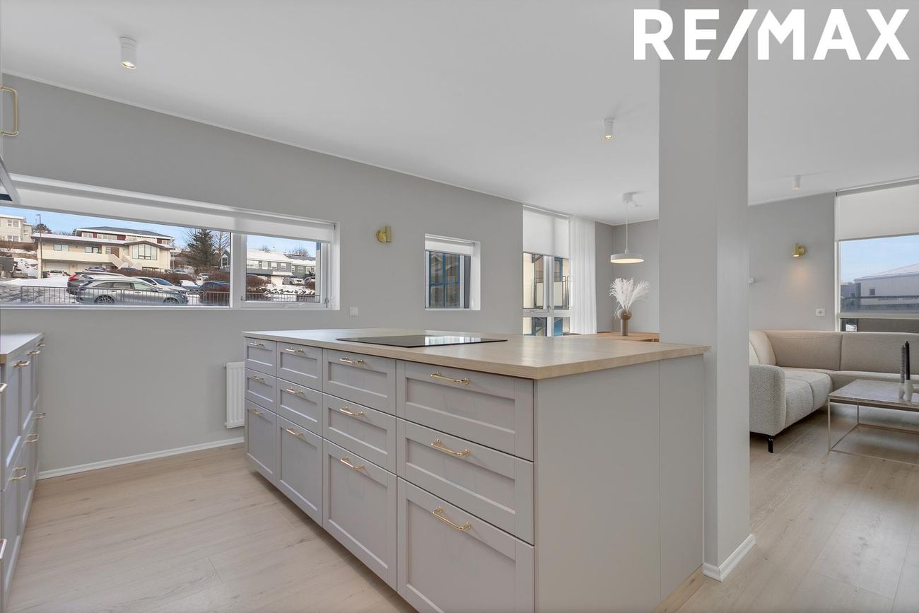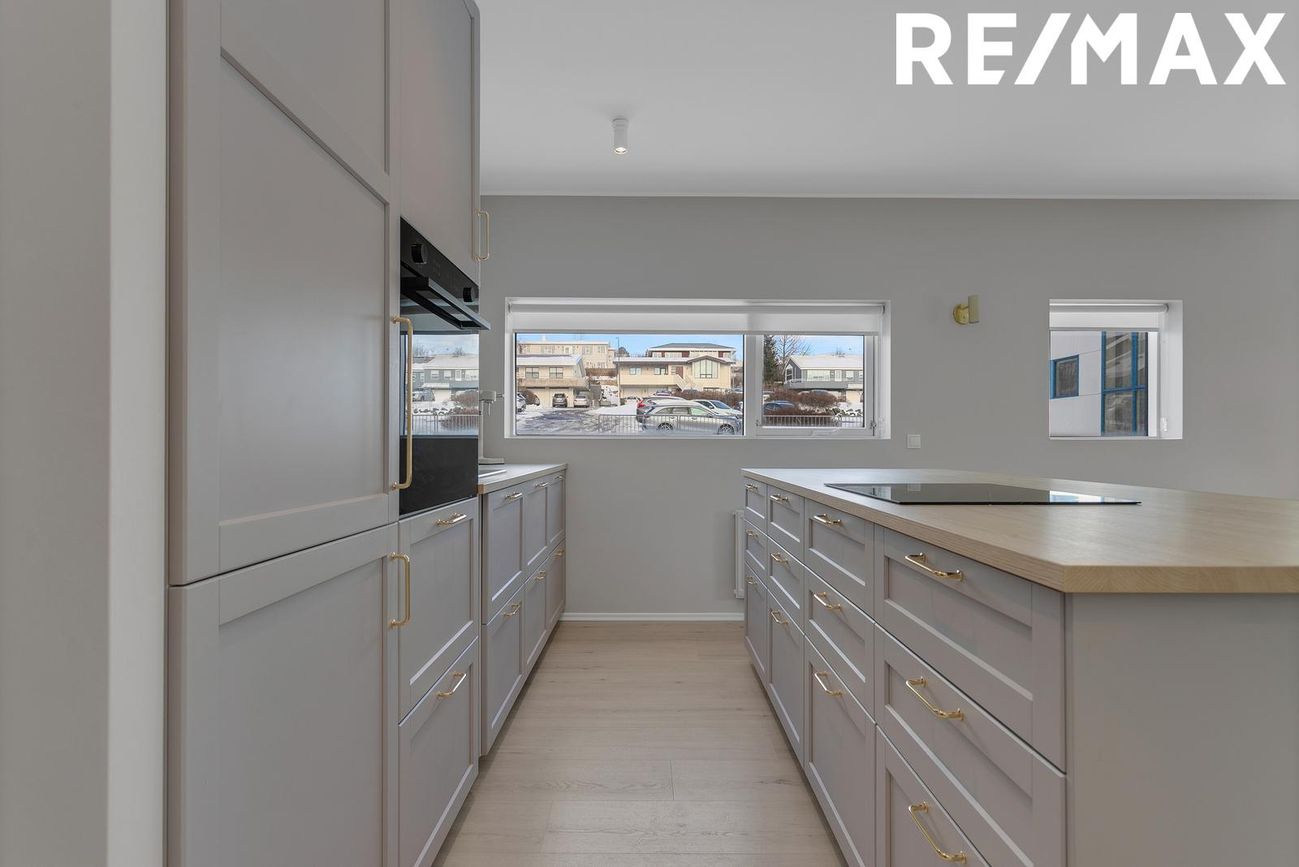 Samkvæmt Þjóðskrá Íslands er íbúðarhlutinn er 63 m2 auk 5 fm2 sér geymslu í sameign. Samtals 68 m2. Gengið inn í íbúð á sömu hæð og inngangurinn. Engir stigar.Eignin var mikið endurnýjuð á þessu ári,skipt var um eldhúsinnréttingu og öll tæki. Ný gólfefni eru á allri íbúðinni, Eignin var öll máluð og baðið var flísalagt og sett ný baðinnrétting. Skipt var um alla ofna og allir rafmagnstenglar voru endurnýjaðir. Nýr forstofuskápur og nýr stór fataskápur í svefniherbergi. Rennihurðar settar upp við svefniherbergi og við baðherbergi.Nánari lýsing: Forstofa með flísum á gólfi og nýjum forstofuskáp. Eldhús með nýjrri innréttingu og innbyggðum ísskáp og innbyggðri uppþvottavél. Nýr ofn í vinnuhæð og eyja með span helluborði. Nýtt parket á gólfi. Baðherbergi með nýjum flísum flísum í hólf og gólf. Ný Innrétting með fallegum vaski.Sturtubaðkar. Rúmgott og bjart svefniherbergi með nýju parketi á gólfi og nýjum fataskáp. Rúmgóð og björt stofa með nýju parketi á gólfi, útgengi á svalir. Sér geymsla í sameign ásamt sameiginlegu þvottahúsi og hjóla og vagnageymslu.