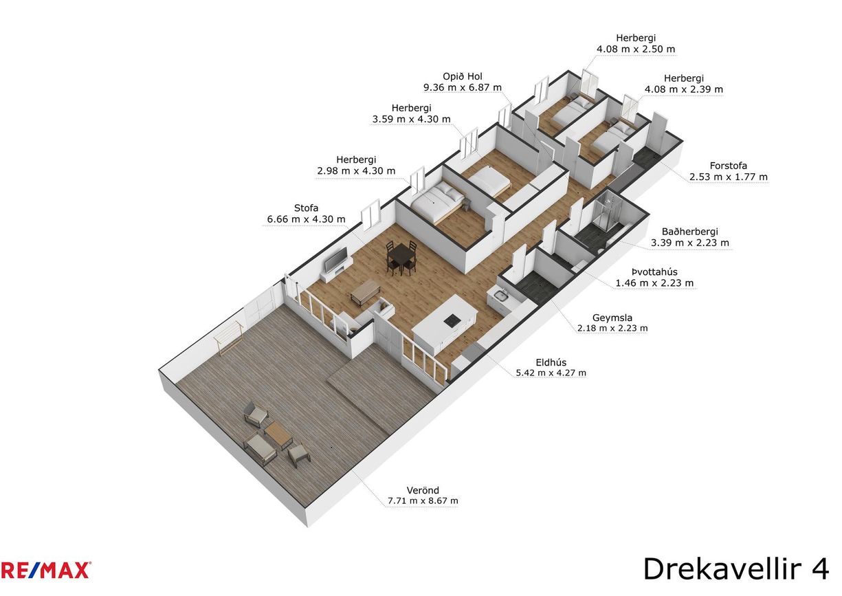 Guðbjörg Helga og Gylfi Jens löggiltir fasteignasalar hjá RE/MAX kynna Drekavelli 4, 221 Hafnarfirði.Stór, björt og rúmgóð fimm herbergja íbúð á jarðhæð með stórri aflokaðri viðarverönd með skjólgirðingu í afar góðu fjórbýlishúsi. Sérinngangur er i allar íbúðir.