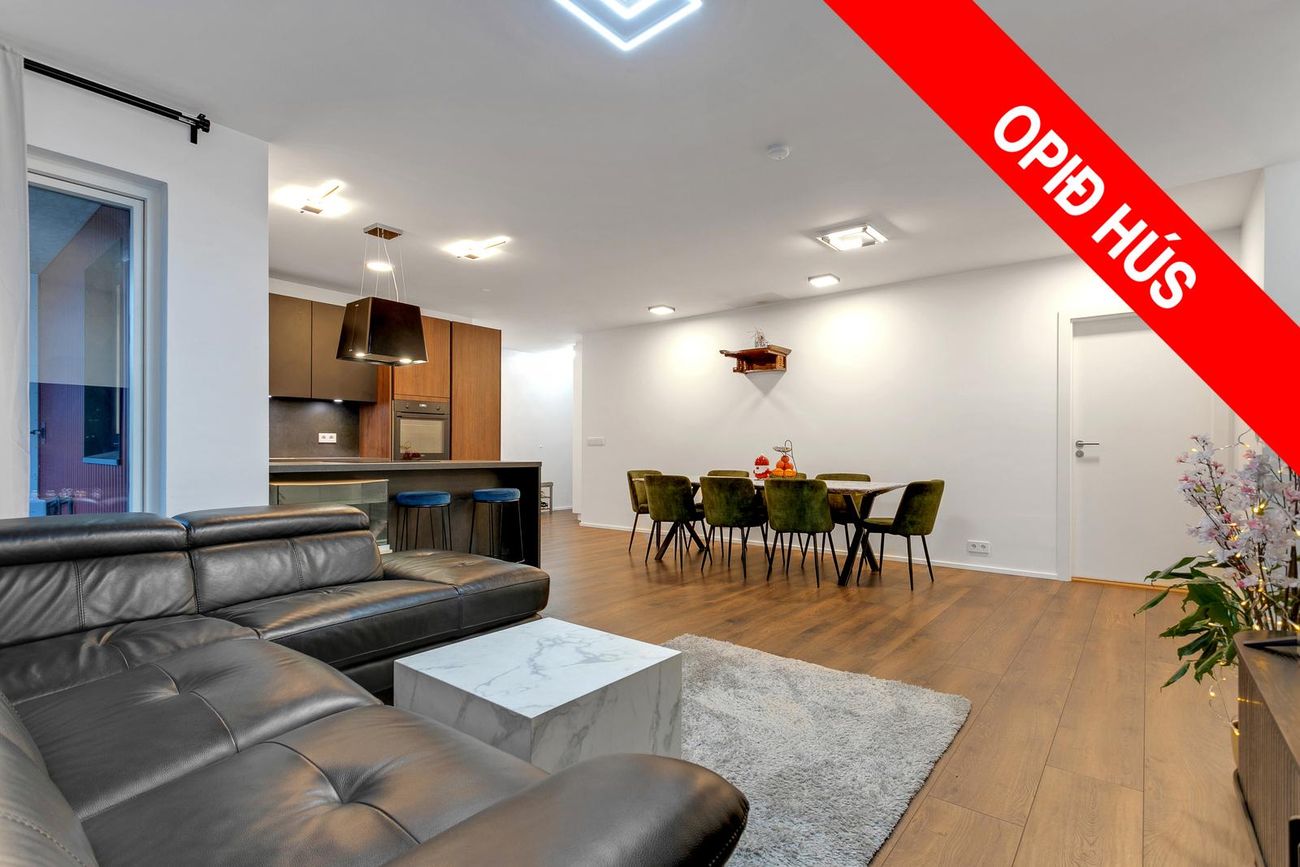 Alrými - Er eldhús borðstofa og stofa í sameiginlegu opnu rými með harðparketi á gólfi