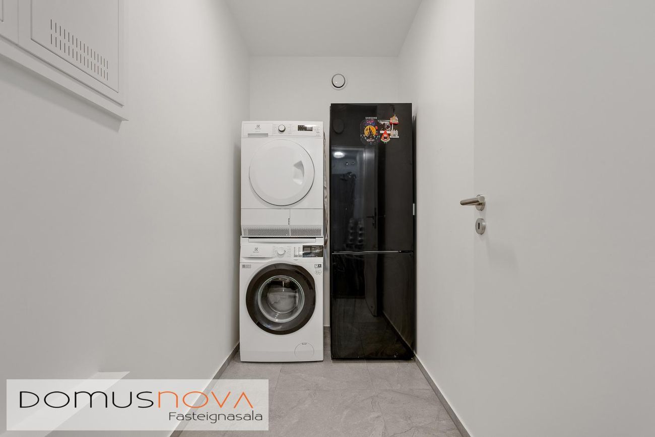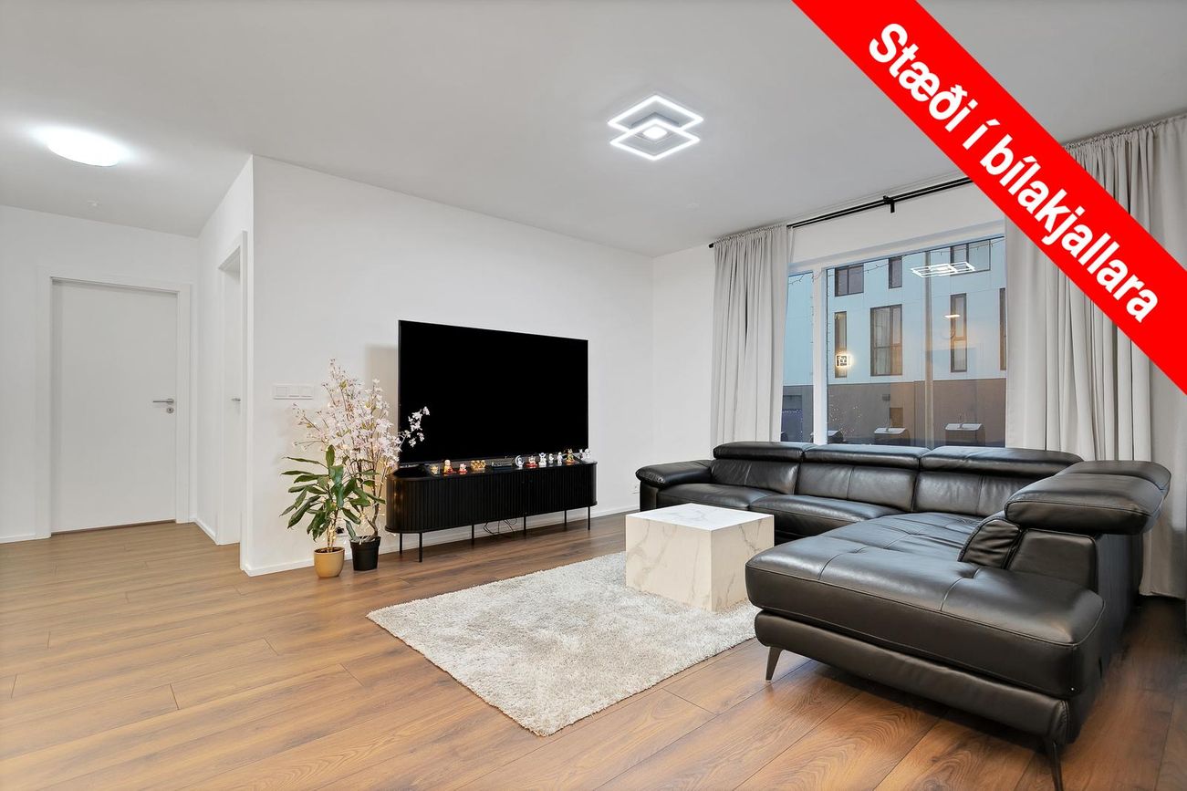 Fasteignamat 2026 er 94.250.000 kr. Byggingarár 2023.Íbúðin skiptist í anddyri/forstofu, eldhús með eyju opið við rúmgott alrými/stofu, 3 svefnherbergi, 2 baðherbergi (annað inn af hjónaherbergi) og þvottaherbergi. Útgengi út á svalir úr stofu. Allar nánari uppýsingar. veitir Sölvi Sævarsson löggiltur fasteignasali í s. 618-0064 eða solvi@domusnova.is Nánari lýsing:Anddyri - Opið anddyri með hvítum fataskáp sem nær að lofti. Harðparket á gólfi.