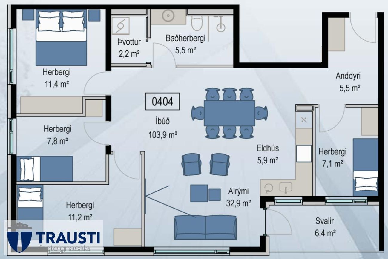 | 5 | 118,70 m² | 87.900.000 kr. 6. janúar 2024 | 87.000.000 kr. 6. nóvember 2023 | |