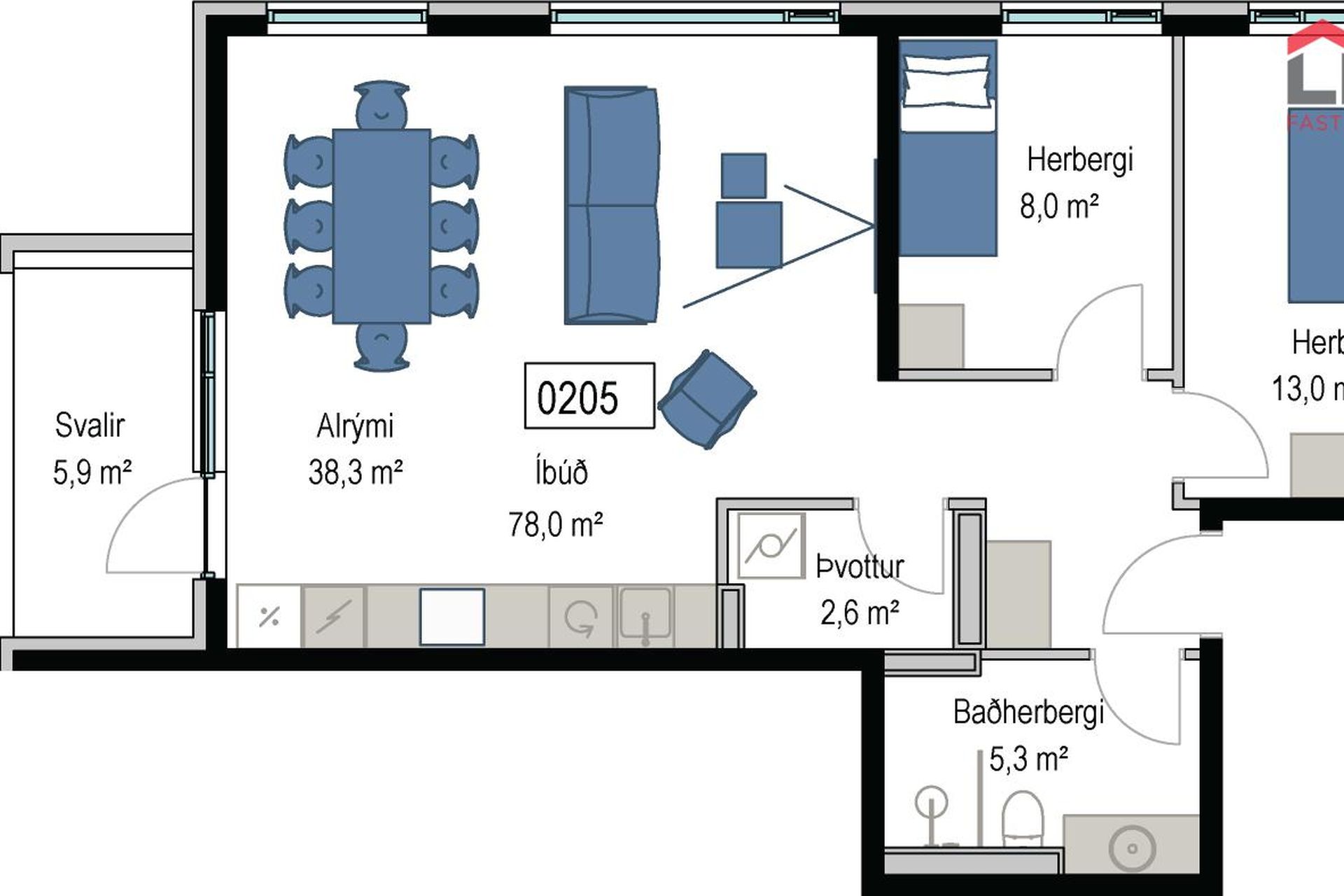 | 4 | 170,70 m² | 149.900.000 kr. 27. janúar 2025 | 119.900.000 kr. 16. apríl 2024 |