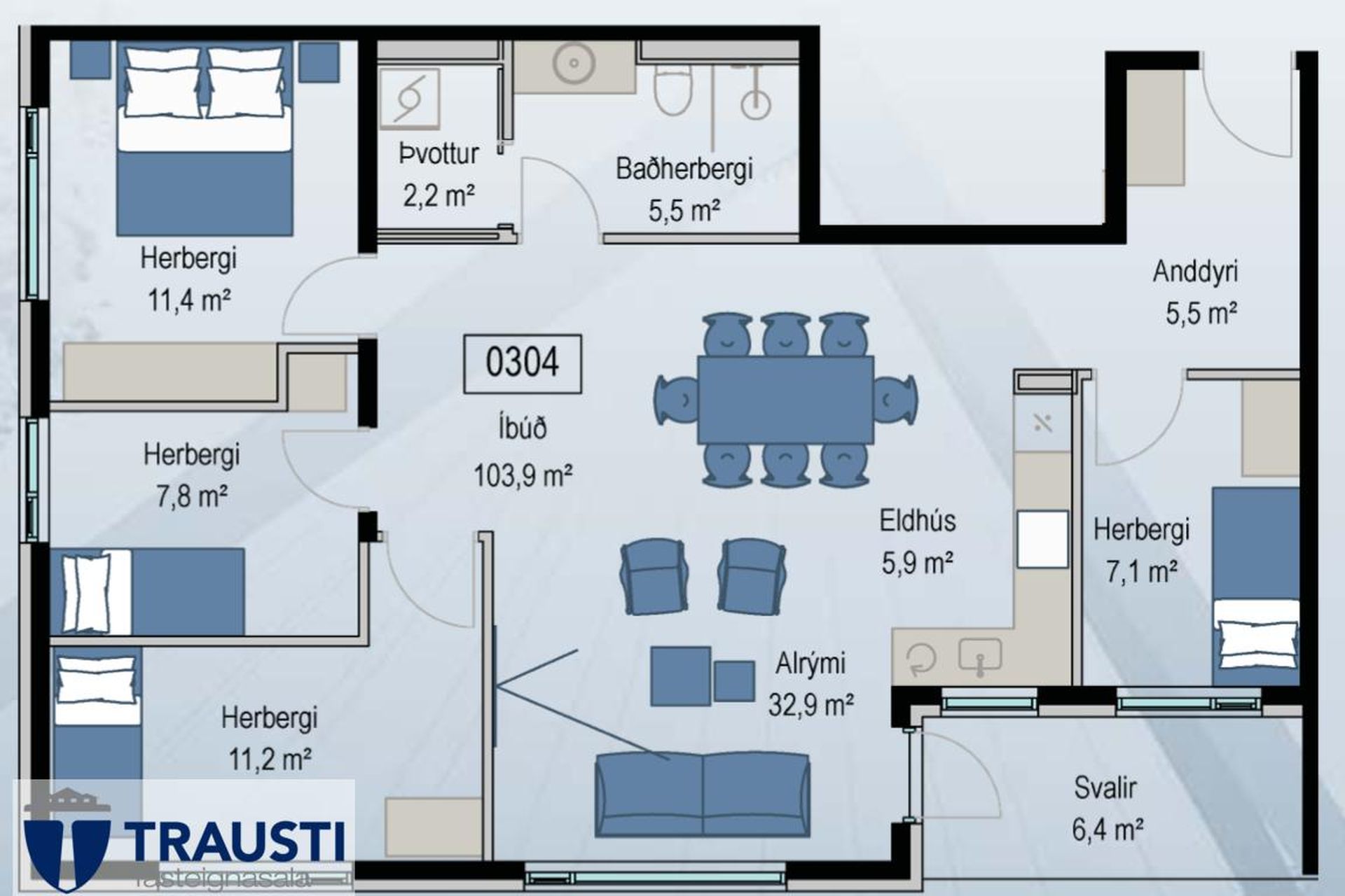| 5 | 118,70 m² | 87.900.000 kr. 6. janúar 2024 | 87.000.000 kr. 6. nóvember 2023 |