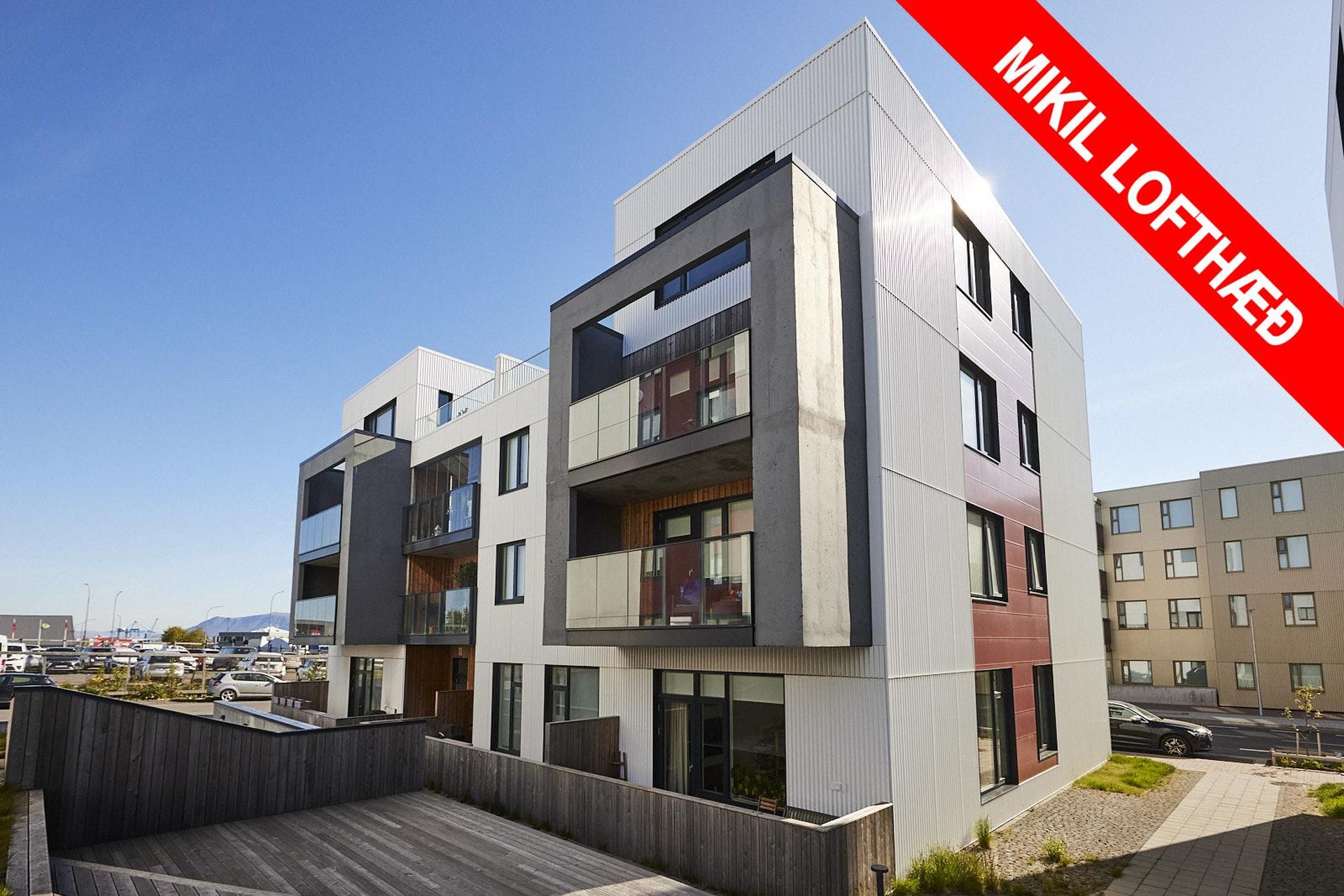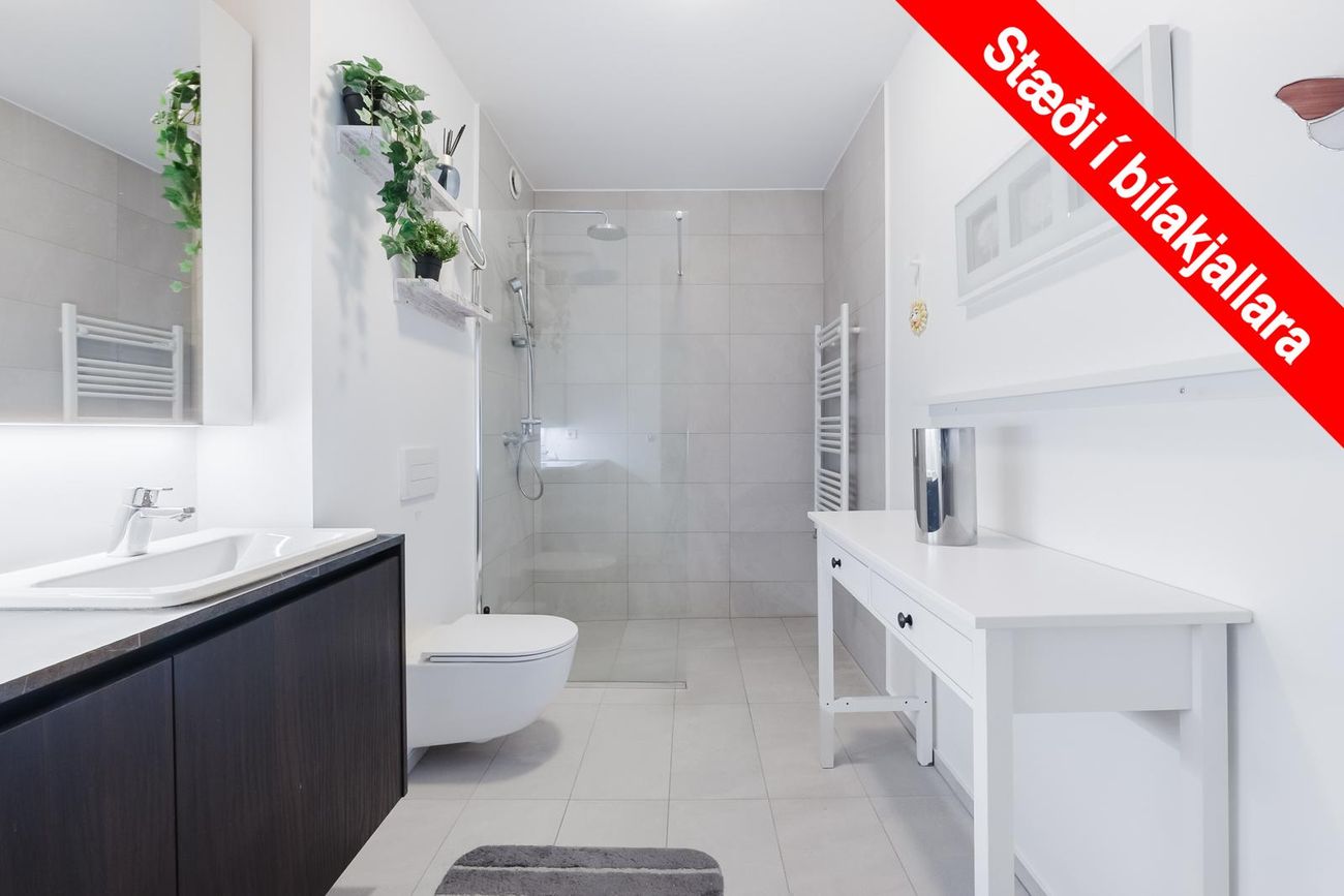 Mikil lofthæð - Sérbílastæði í lokuðum bílakjallara - sérafnotaflötur inn í bakgarð