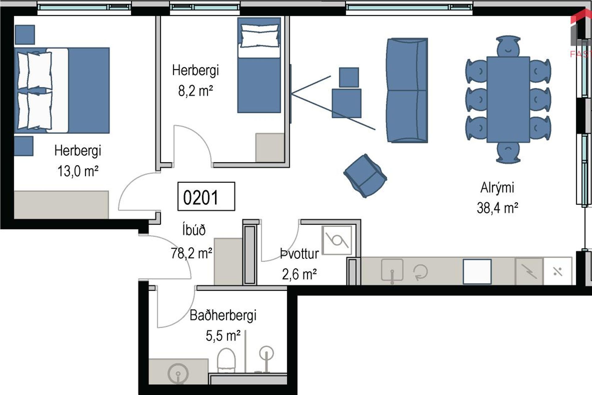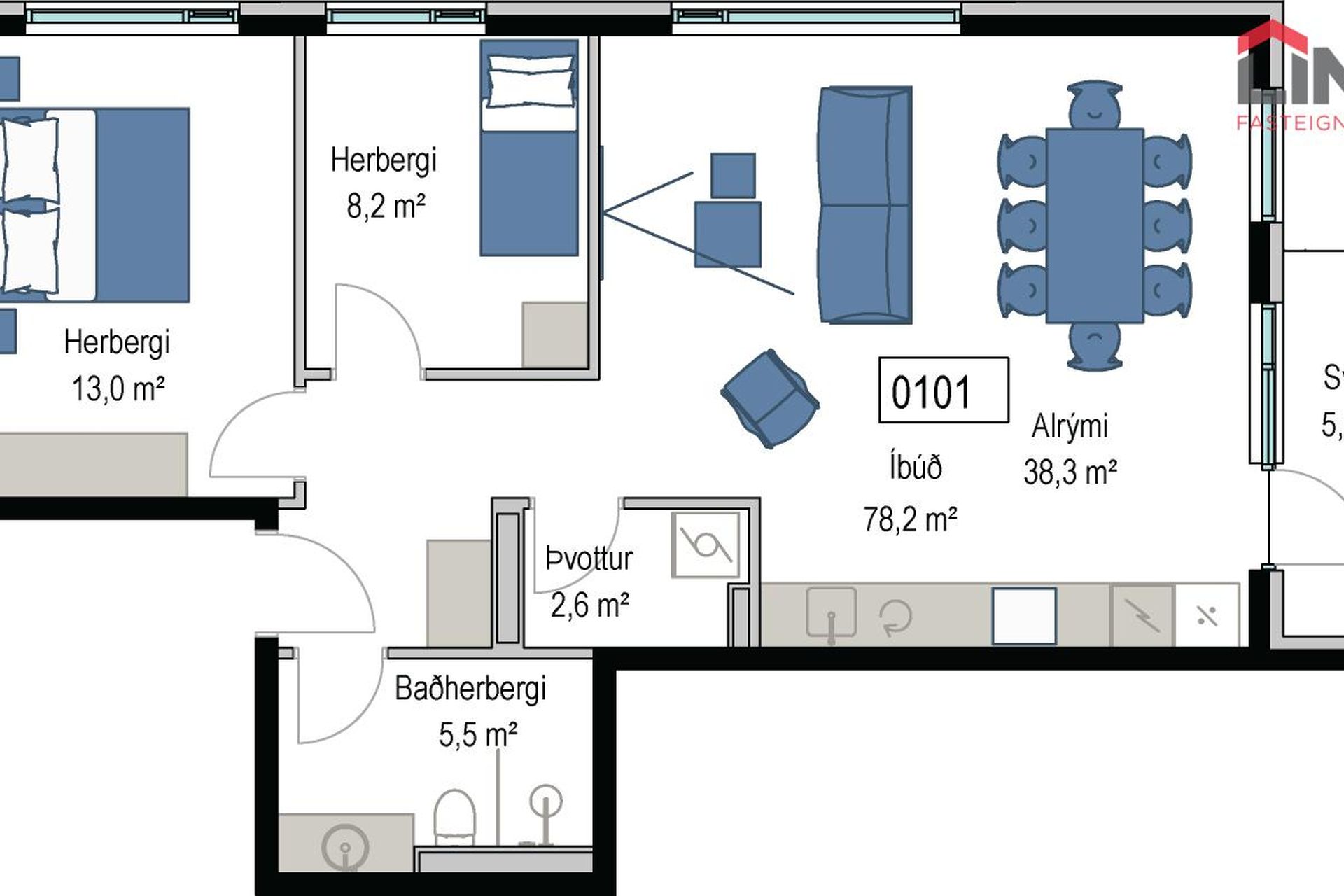 | 5 | 126,30 m² | 102.900.000 kr. 6. apríl 2026 | 93.900.000 kr. 2. ágúst 2024 |