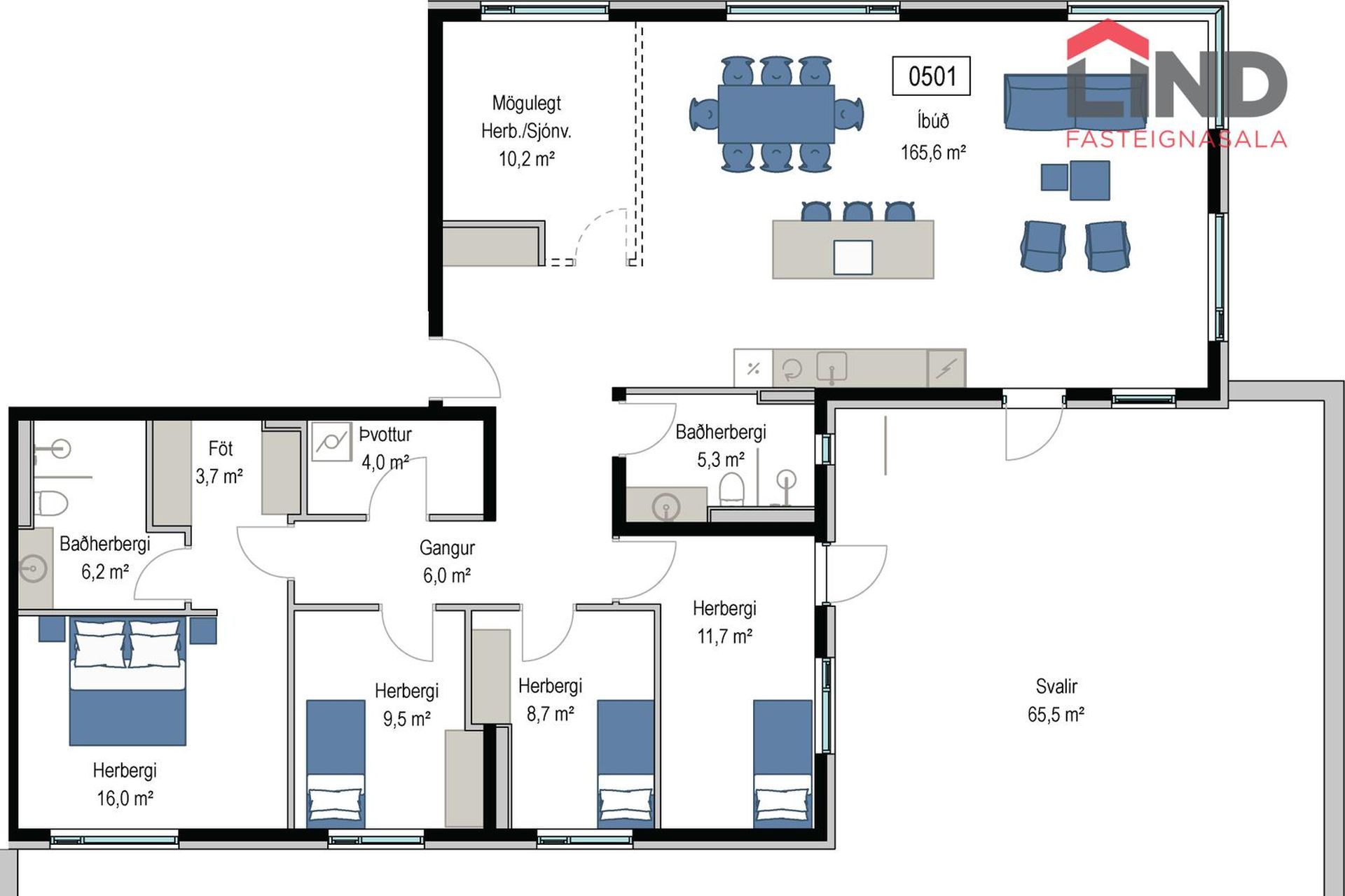 | 5 | 185,70 m² | 164.900.000 kr. 11. nóvember 2023 | 163.400.000 kr. 11. desember 2023 |