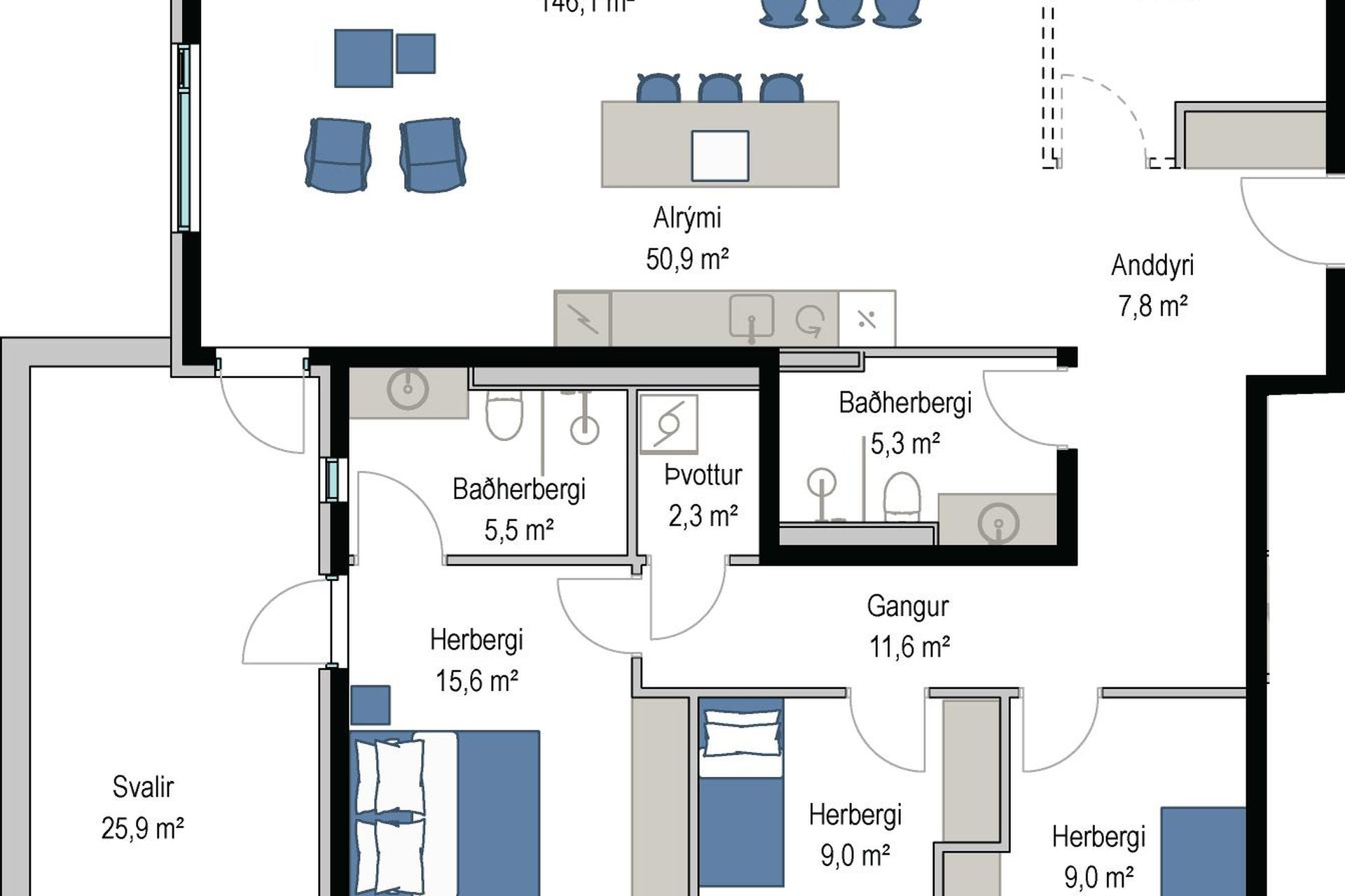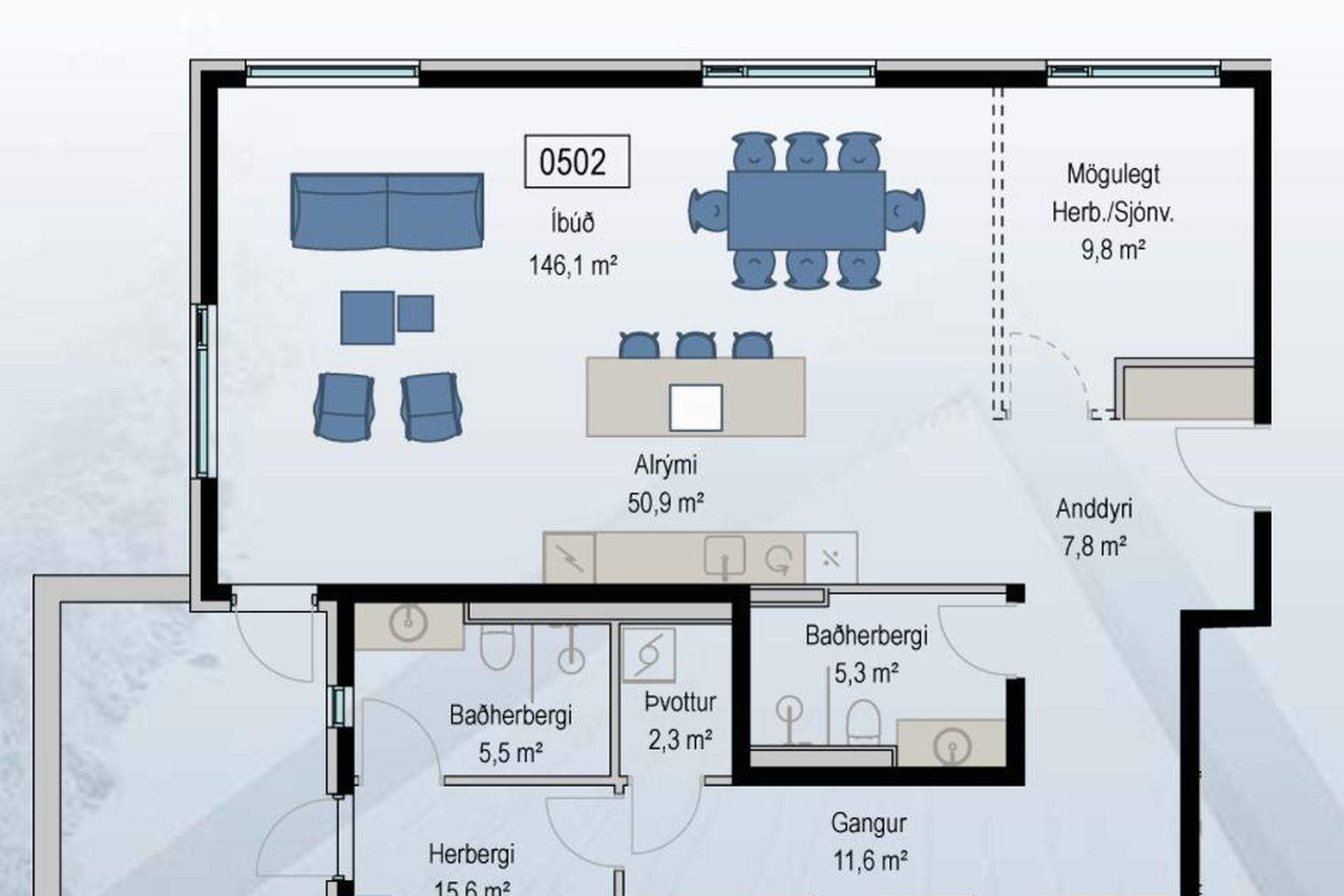 | 5 | 126,30 m² | 102.900.000 kr. 6. apríl 2026 | 93.900.000 kr. 2. ágúst 2024 |