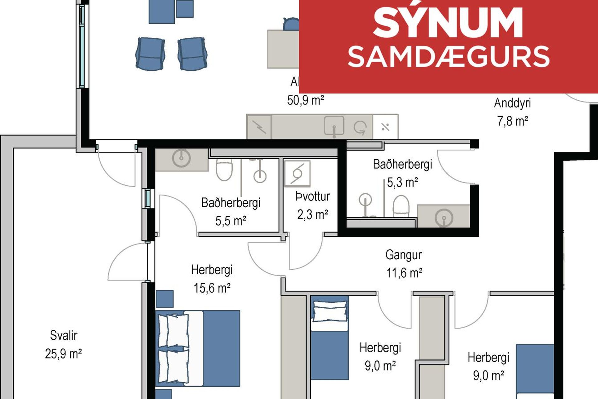 | 4 | 122,50 m² | 94.900.000 kr. 2. október 2025 | 93.000.000 kr. 13. mars 2026 |