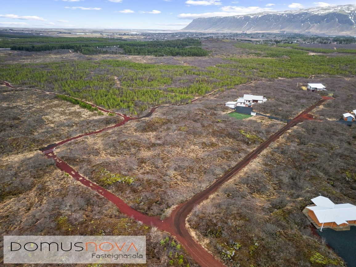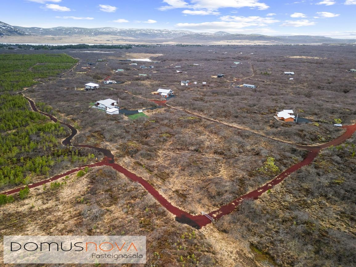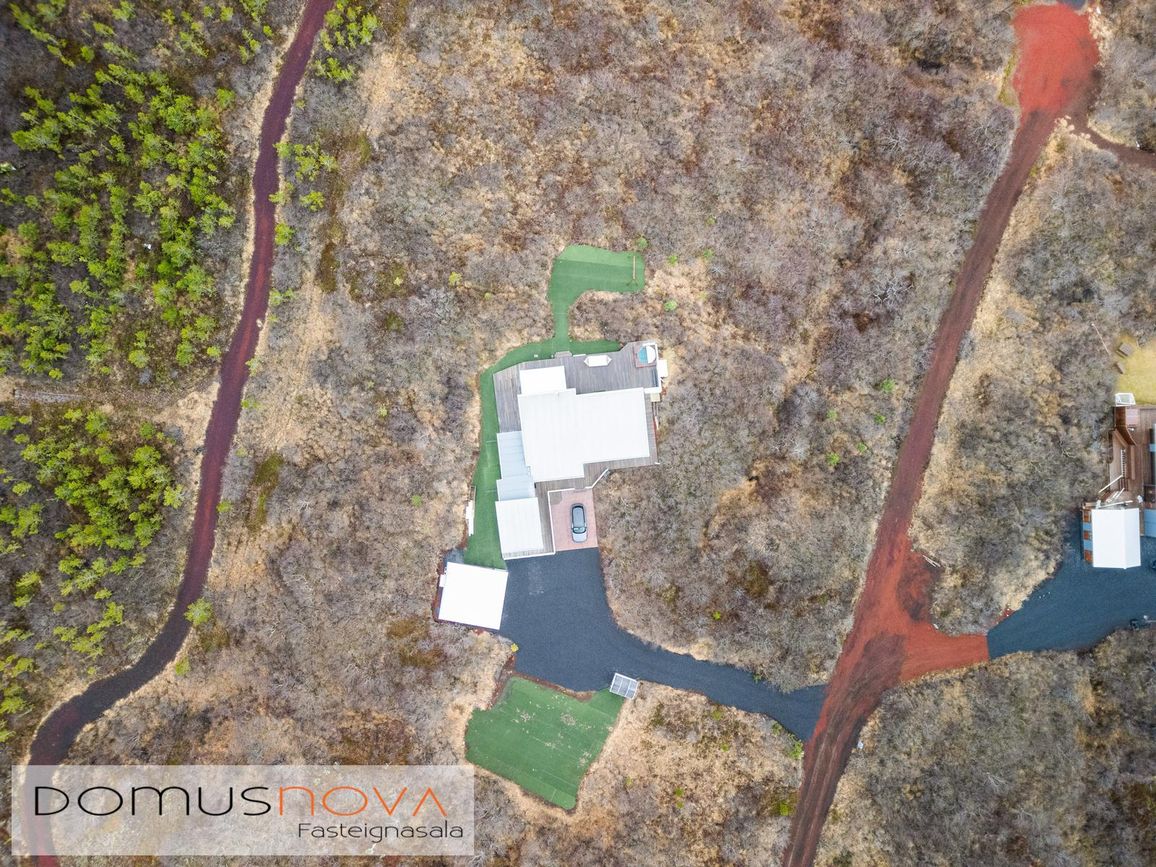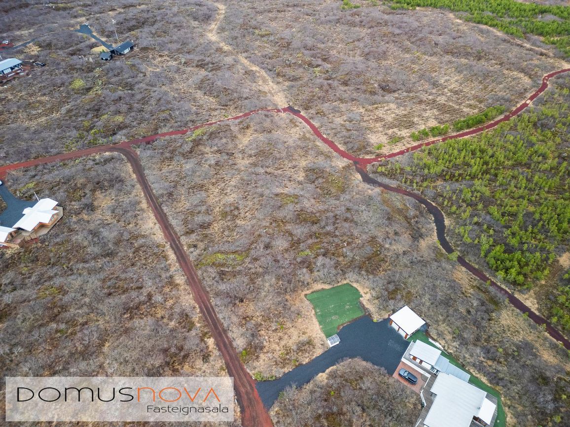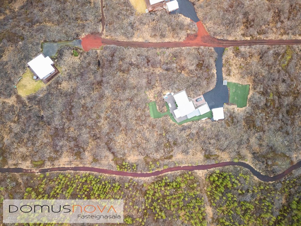 Eignin stendur á eignarlandi og mögulegt að kaupa aðliggjandi viðbótarland 6.500fm og stækka þannig lóðina í 14.000fm. Bæði löndin eru í fallegu umhverfi þakin lágvöxnum birkitrjám, hrauni og mosa.