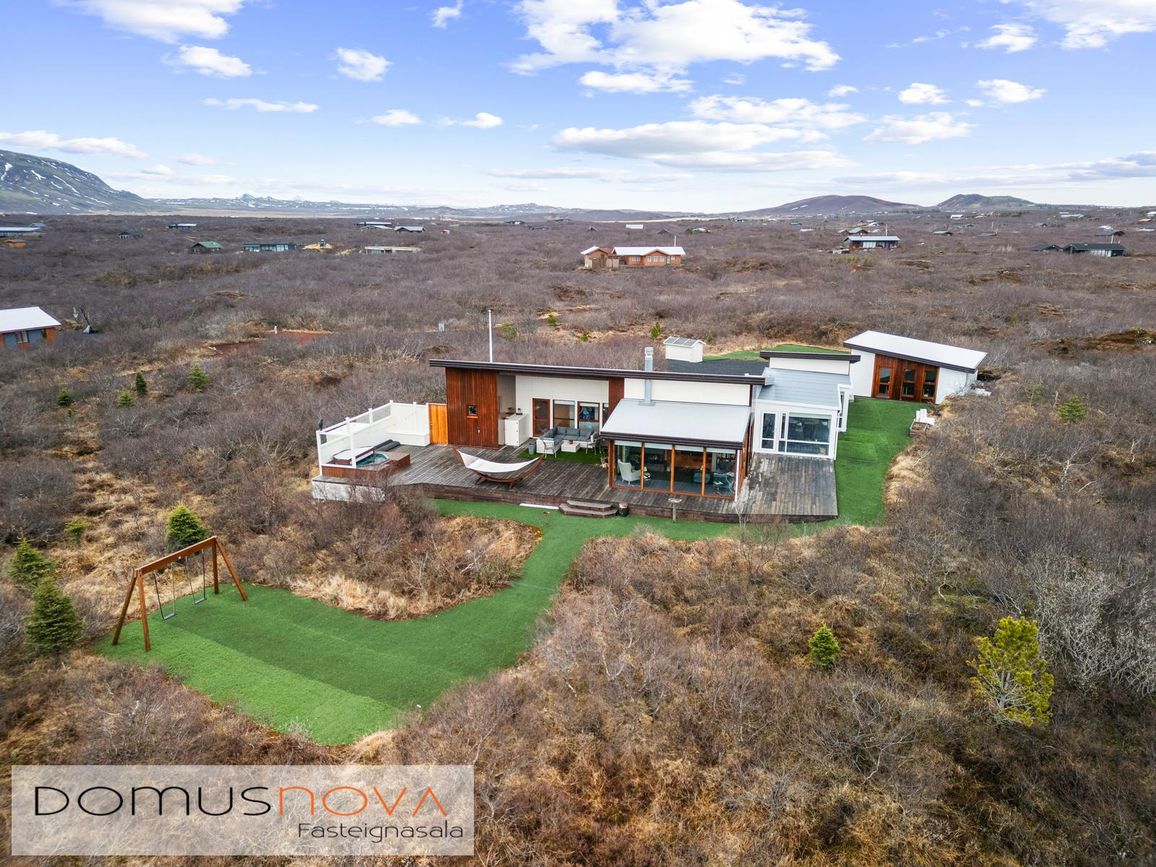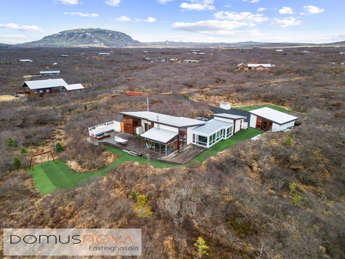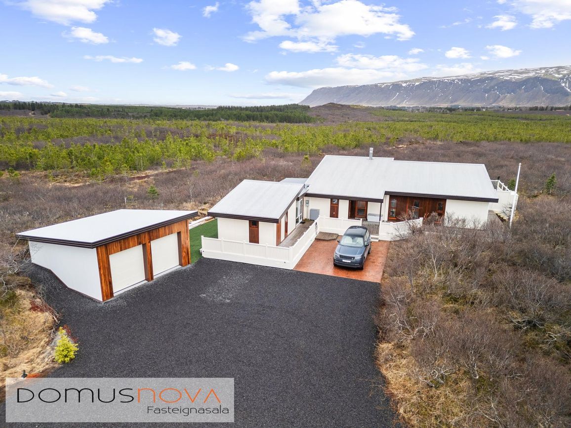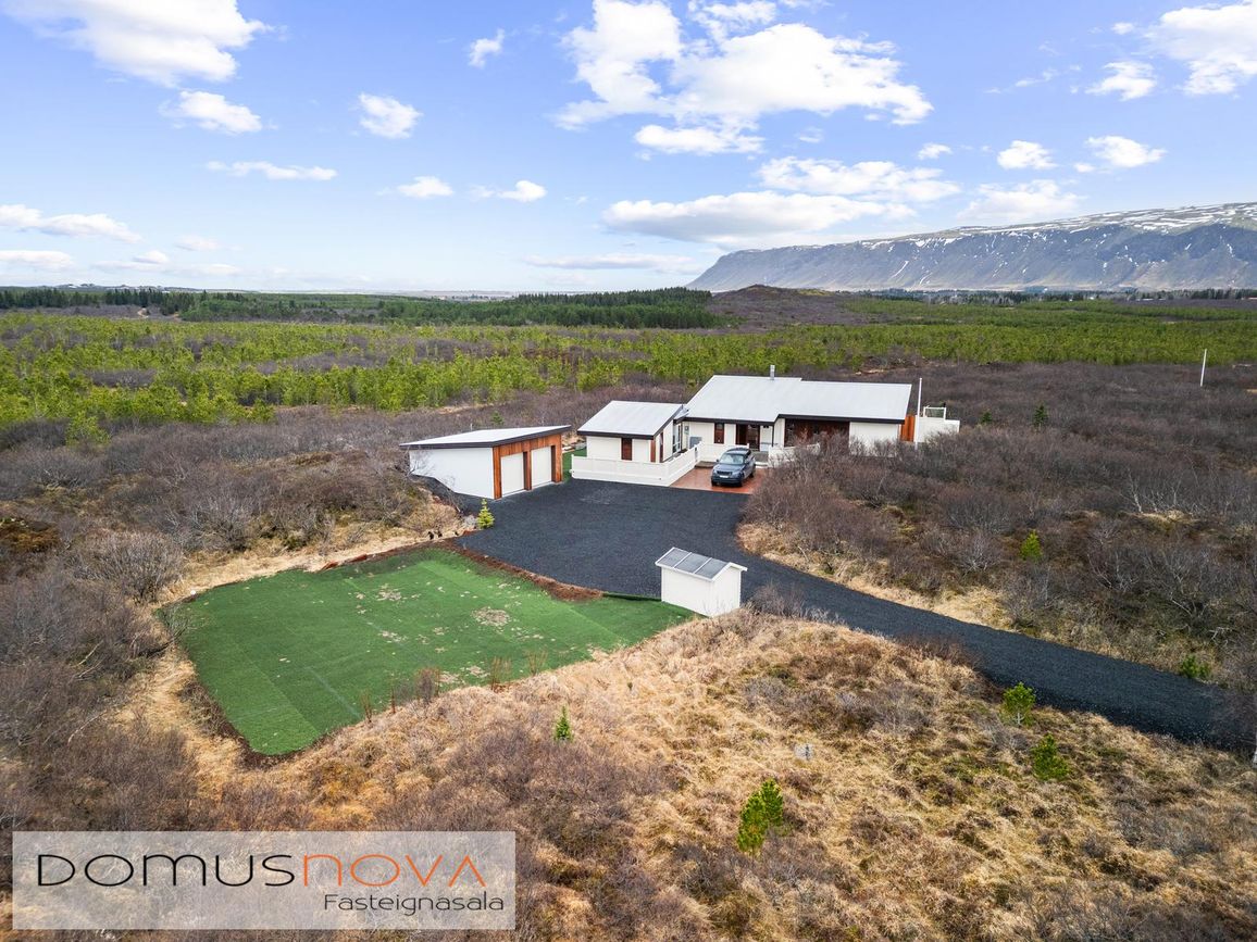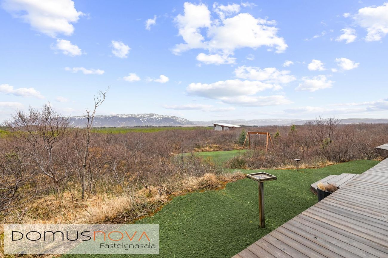 Eignin stendur á eignarlandi og mögulegt að kaupa aðliggjandi viðbótarland 6.500fm og stækka þannig lóðina í 14.000fm. Bæði löndin eru í fallegu umhverfi þakin lágvöxnum birkitrjám, hrauni og mosa.