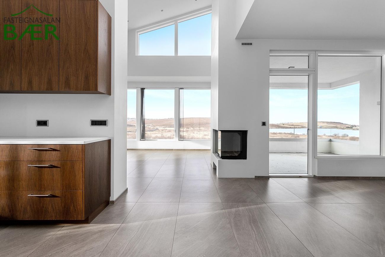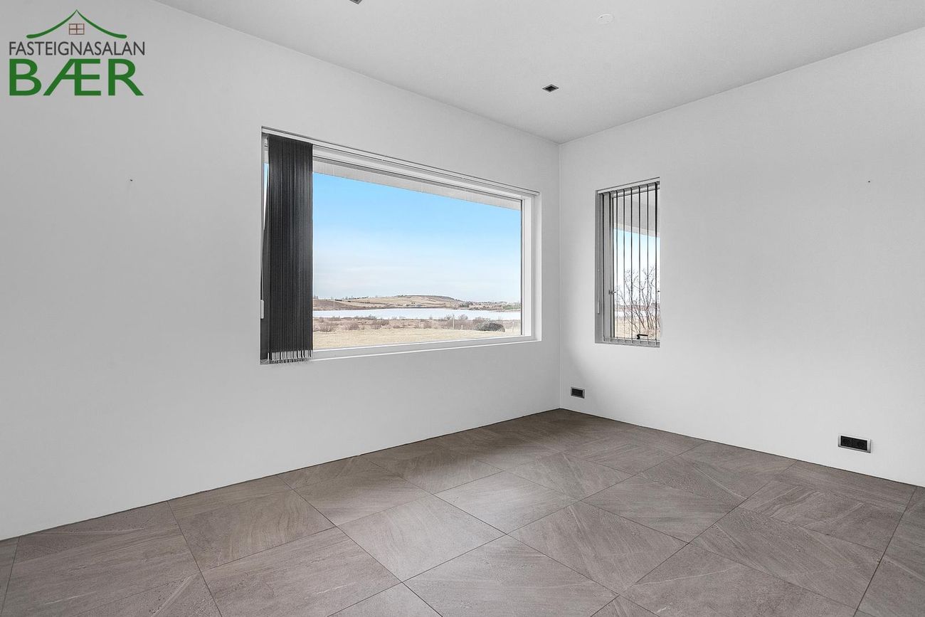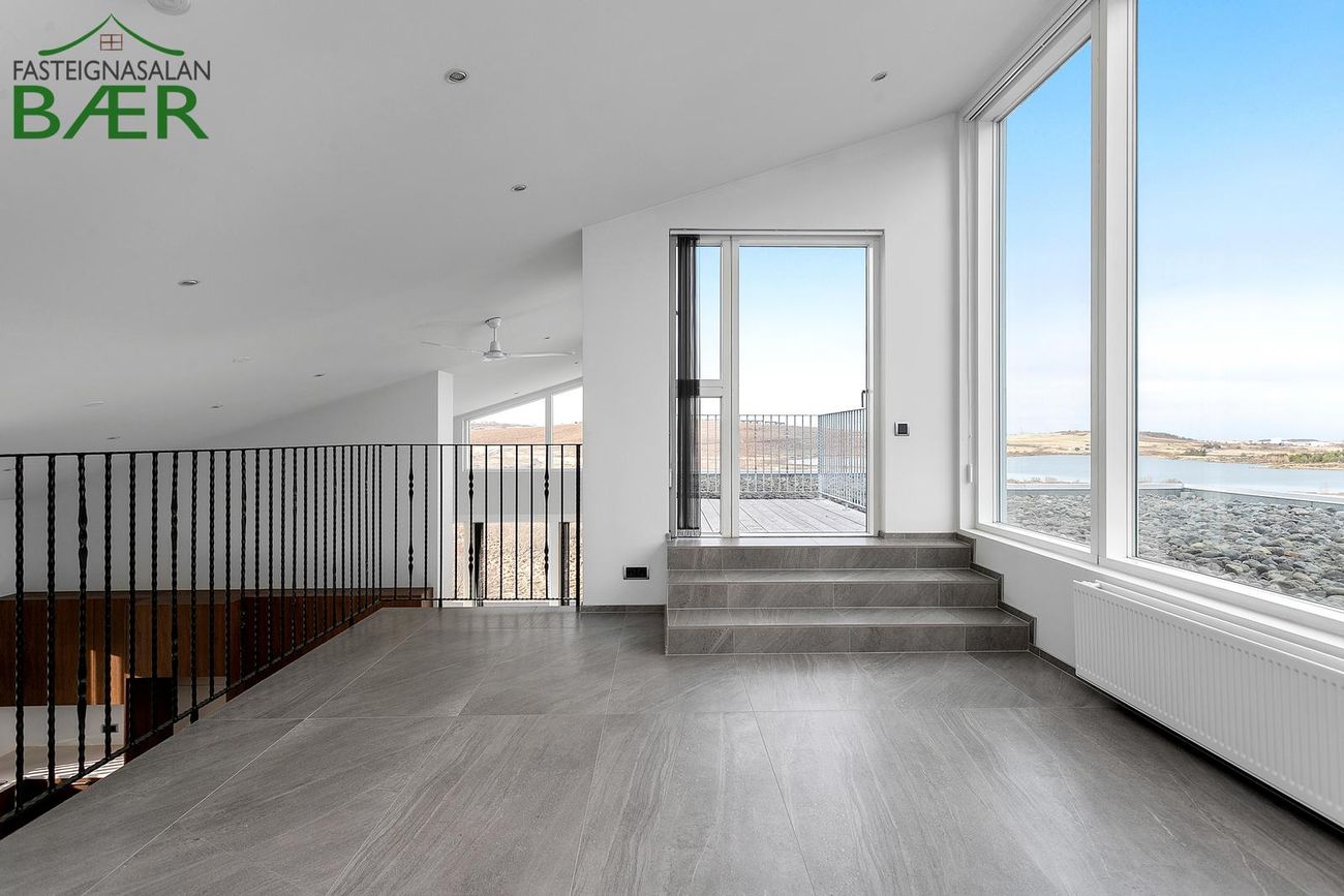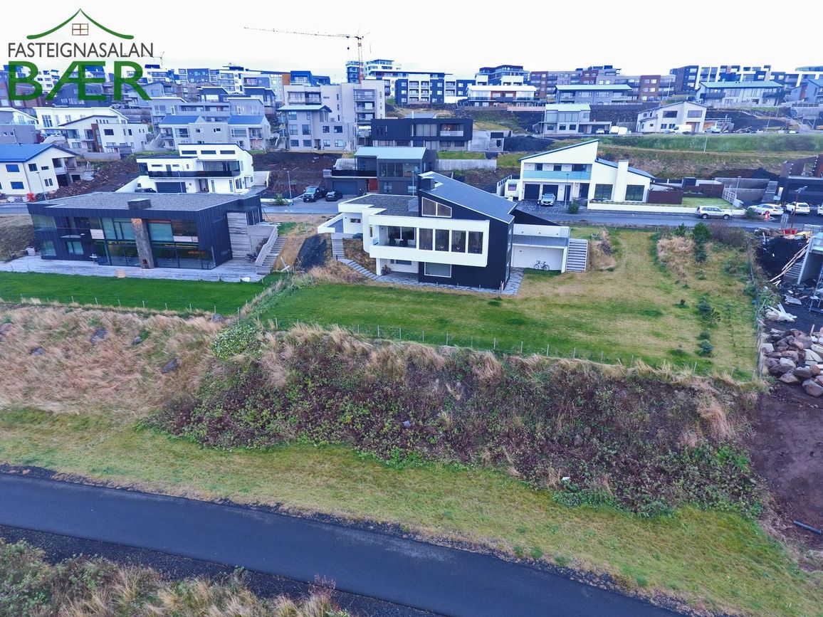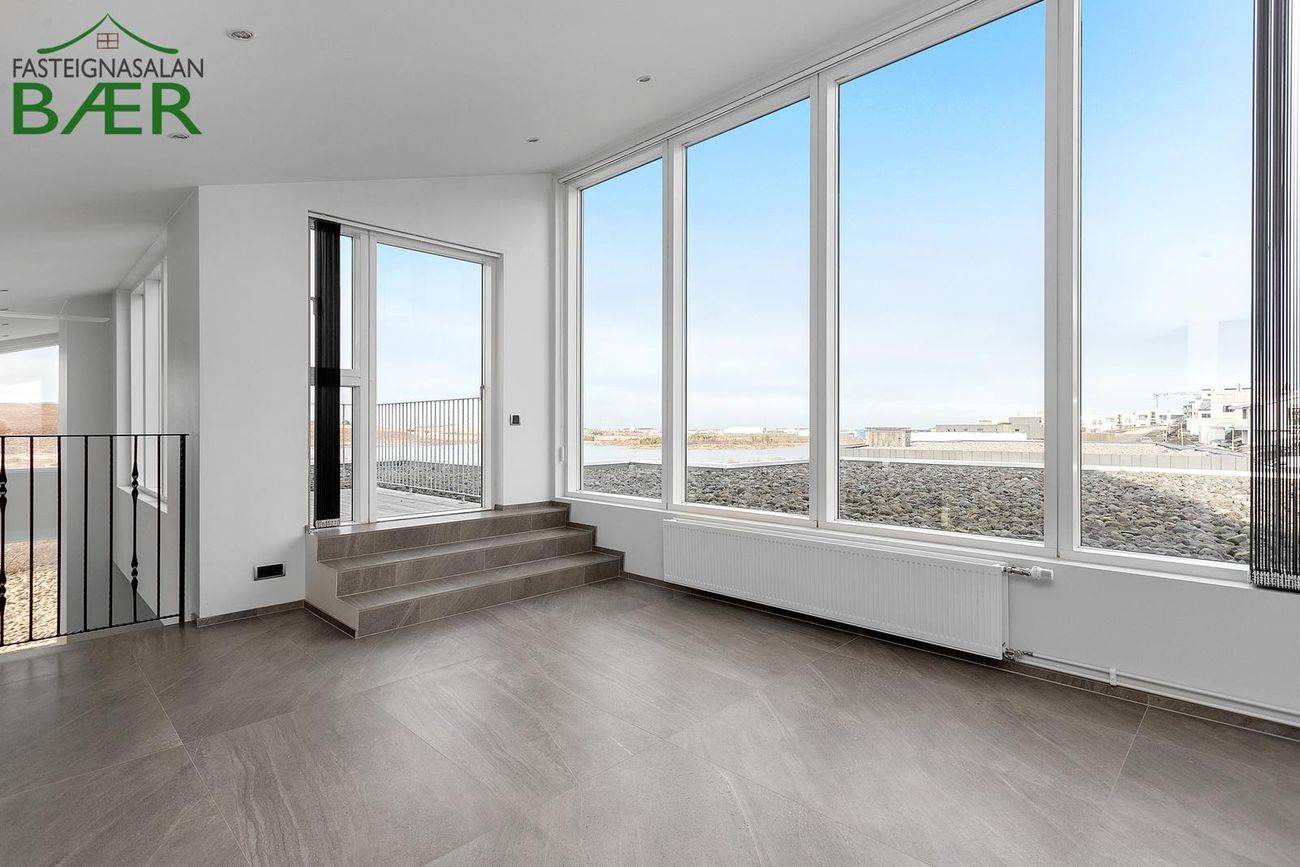 396,7 fm hús með þreföldum bílskúr á 1.594 fm lóð. Lykilatriði: gólfhiti, jarðvarmi, öryggiskerfi, hágæða flísalagnir, sérsmíðað eldhús og þríglasaðir gluggar.