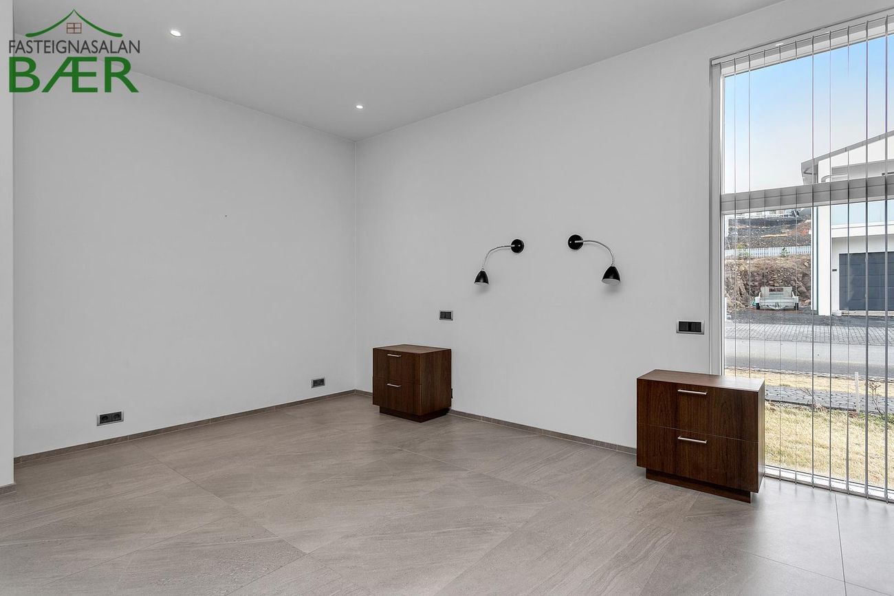 Pallur á efri hæð sem hentar sem vinnu-/skrifstofurými. Opinn kjallari með sjónvarpshorni.