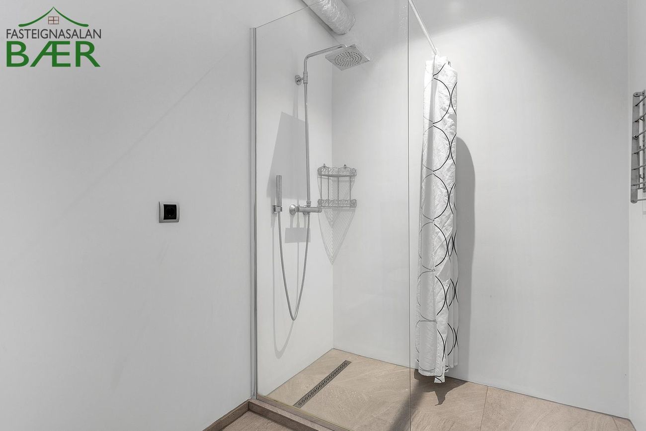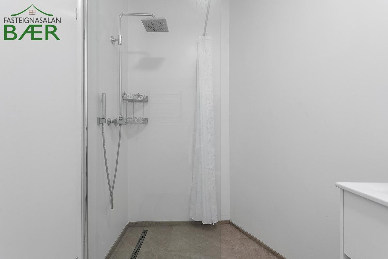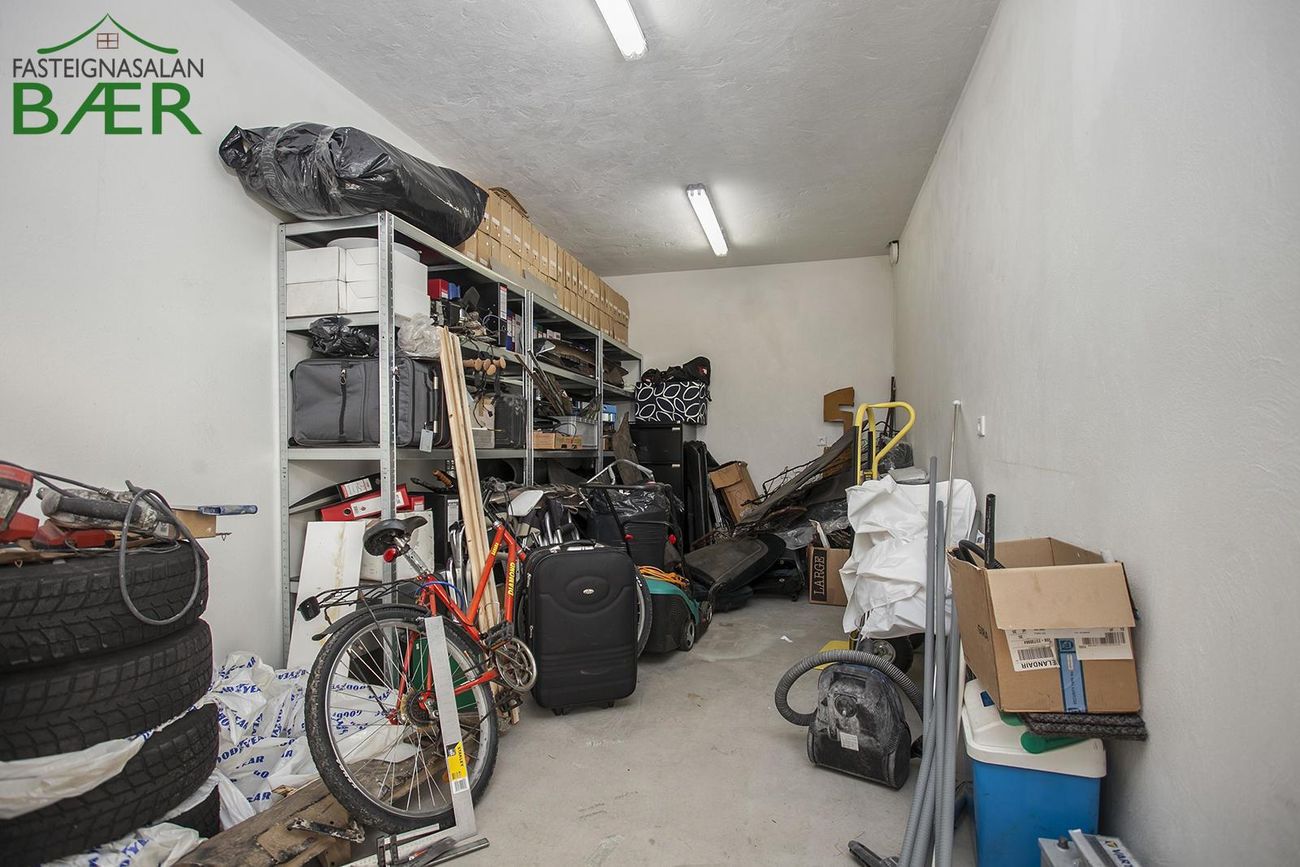 Stór geymsla á neðri hæð með sérinngangi. Aukageymslurými í bílskúr.