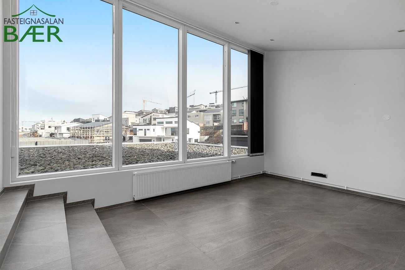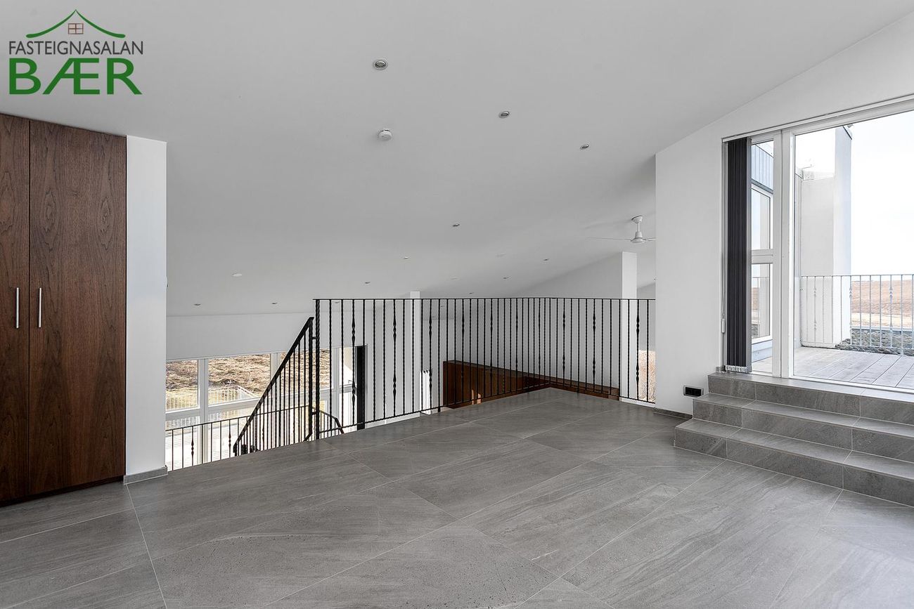 Stórar suður/austur svalir og þaksvalir með víðfeðmu útsýni.