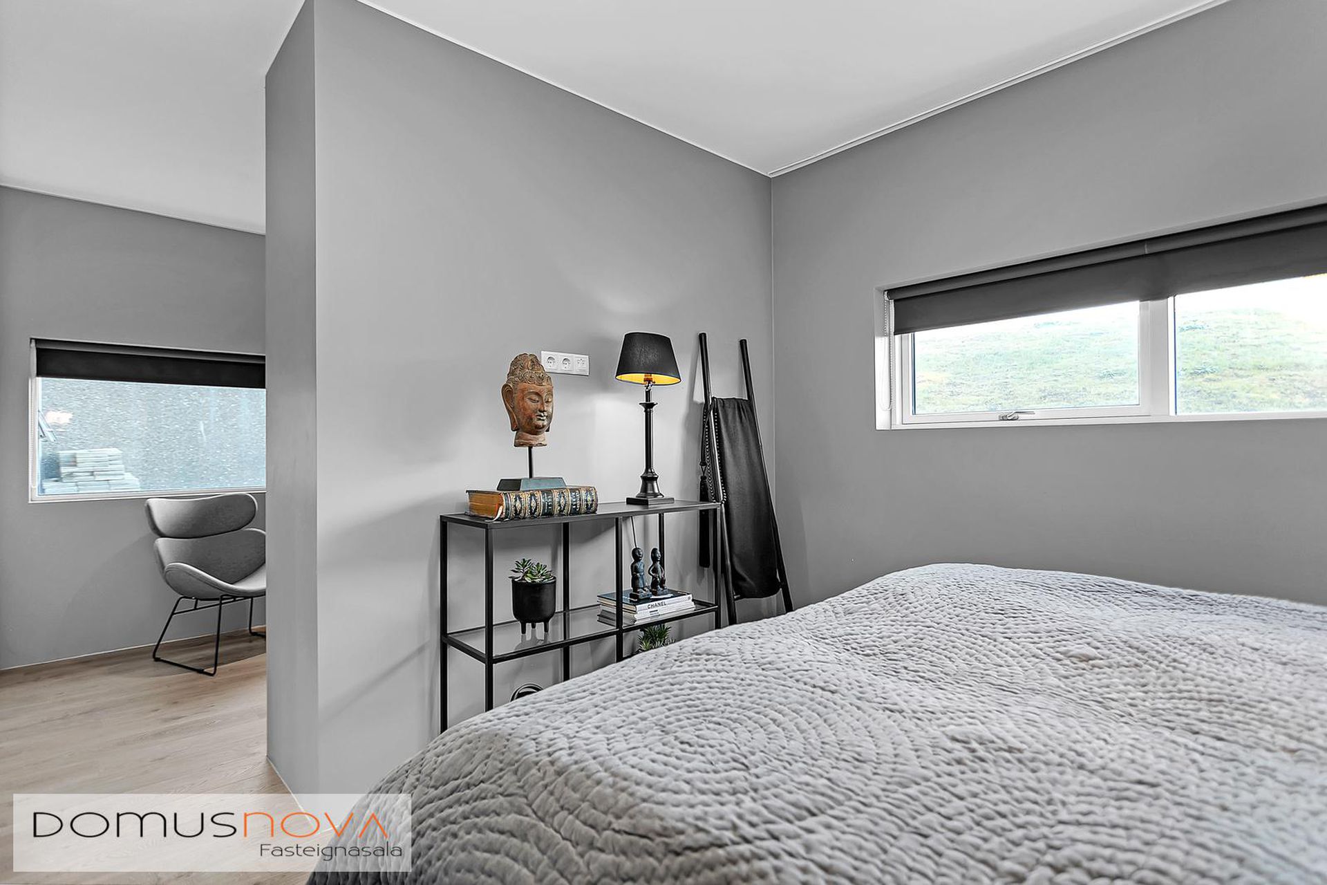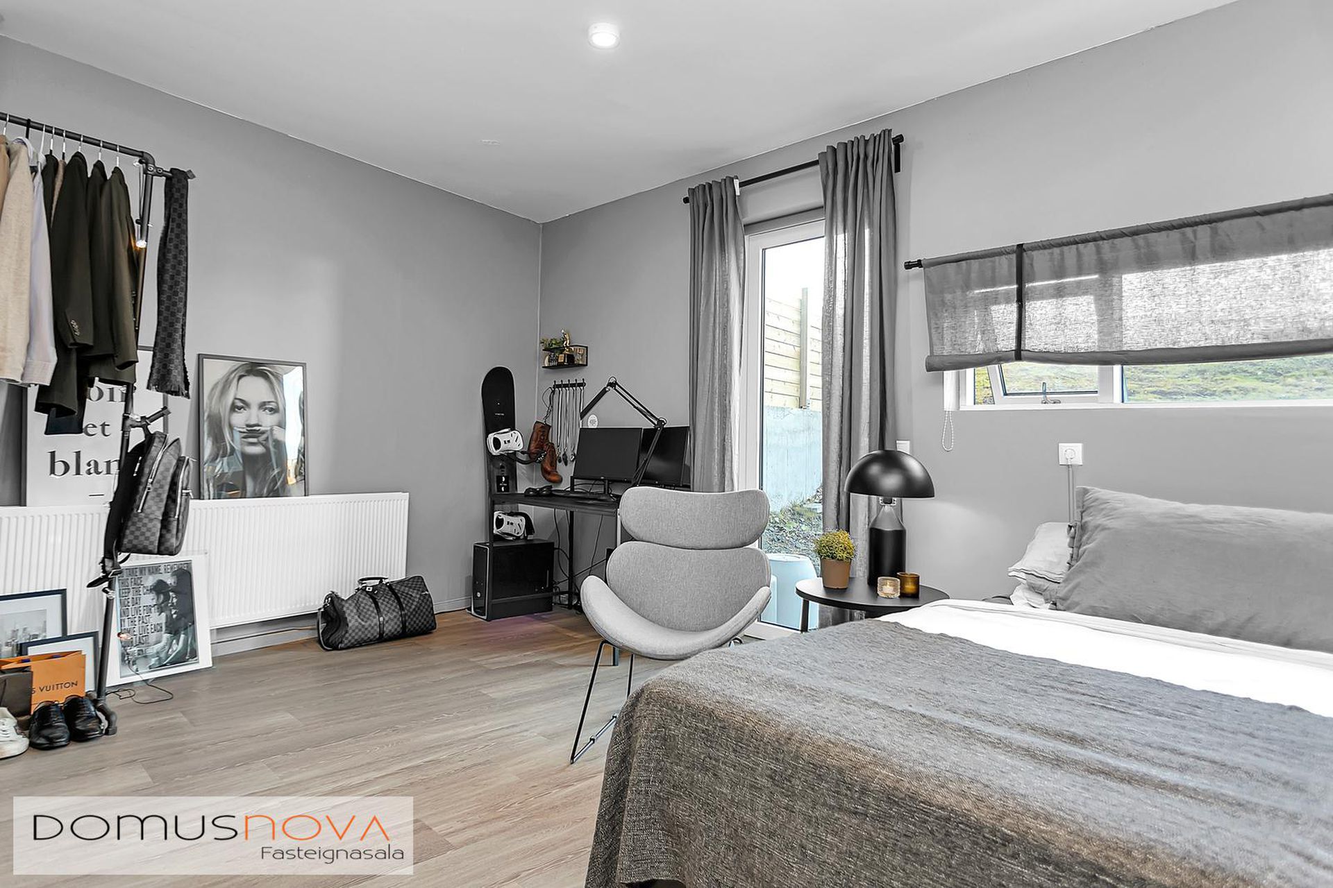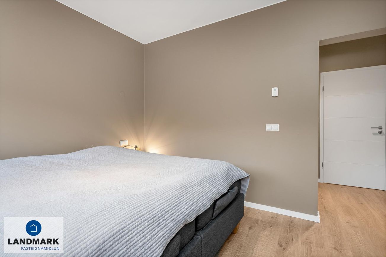 Hjónasvíta: Stór hjónasvíta með tveimur fataherbergjum en einnig er hægt að nýta annað þeirra sem litla skrifstofu.