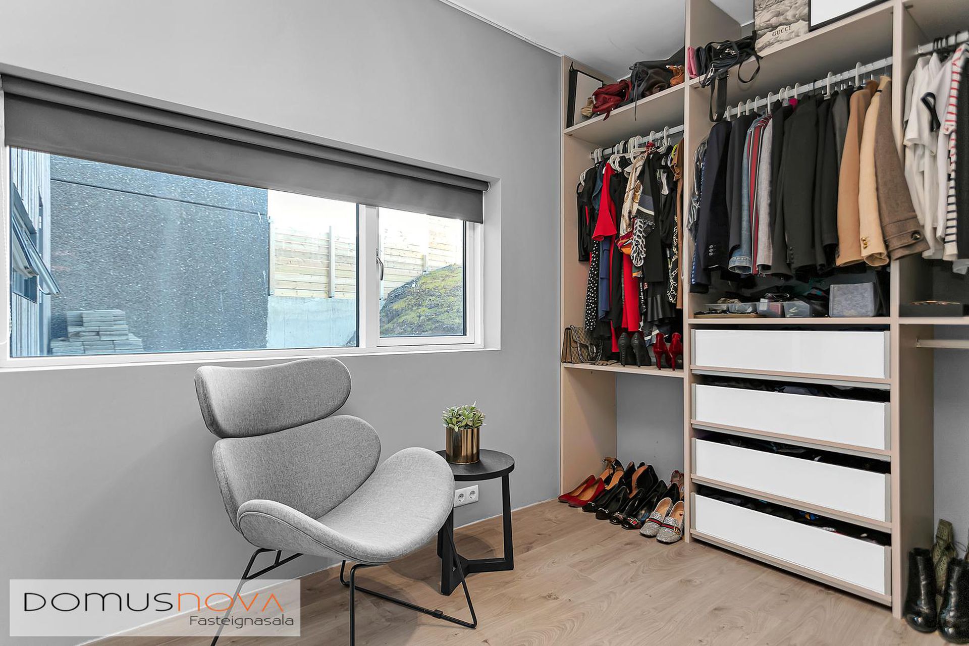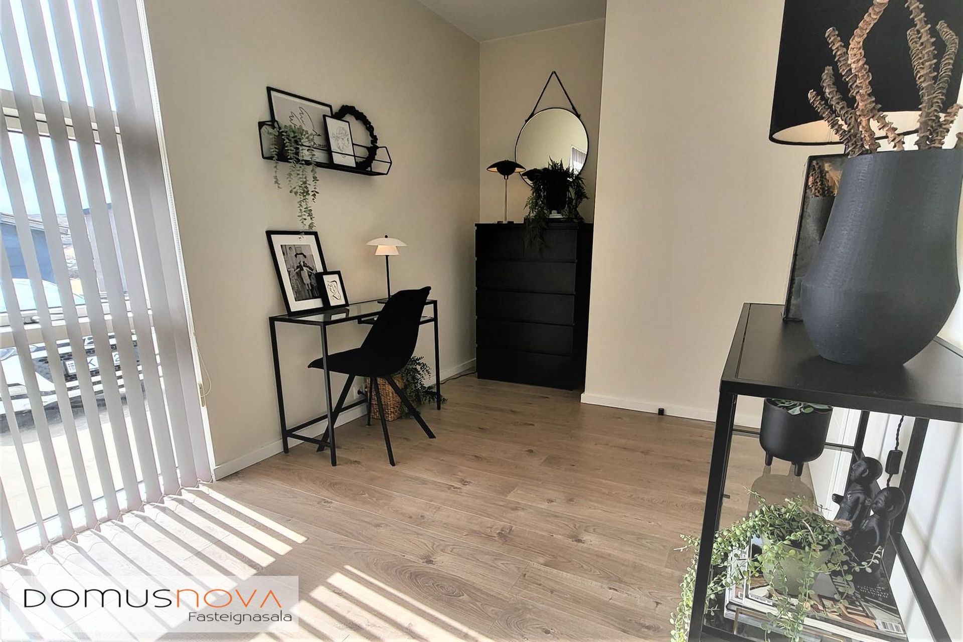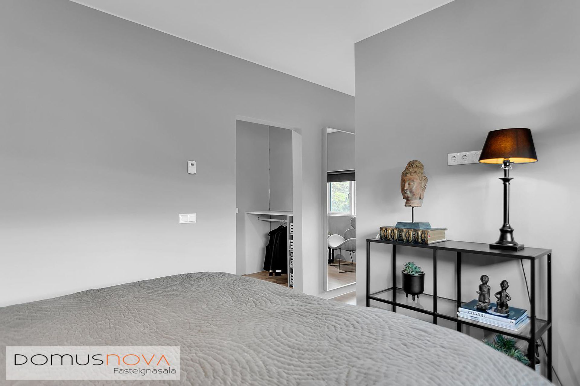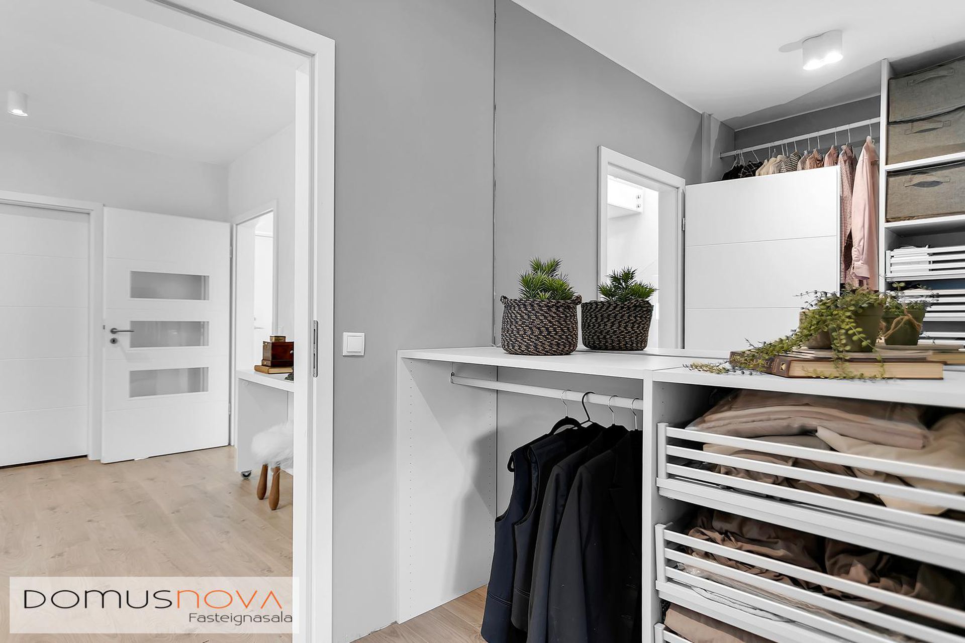 Hjónasvíta: Stór hjónasvíta með tveimur fataherbergjum en einnig er hægt að nýta annað þeirra sem litla skrifstofu.